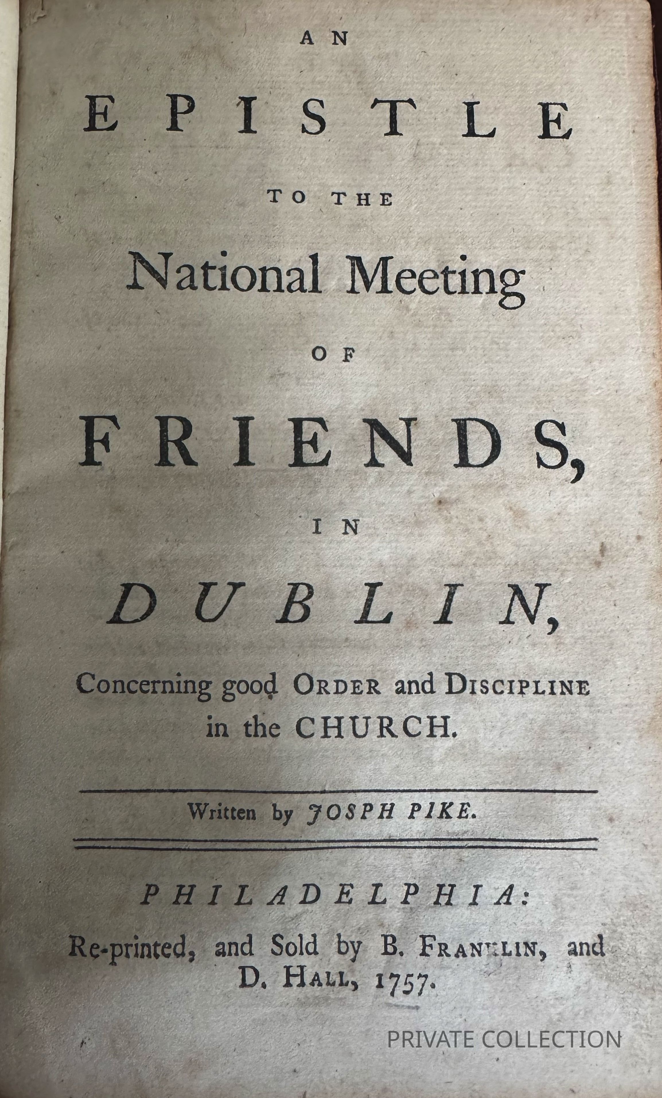 (FRANKLIN IMPRINT) PIKE, Joseph. An Epistle to the National Meeting of FriendsDescription