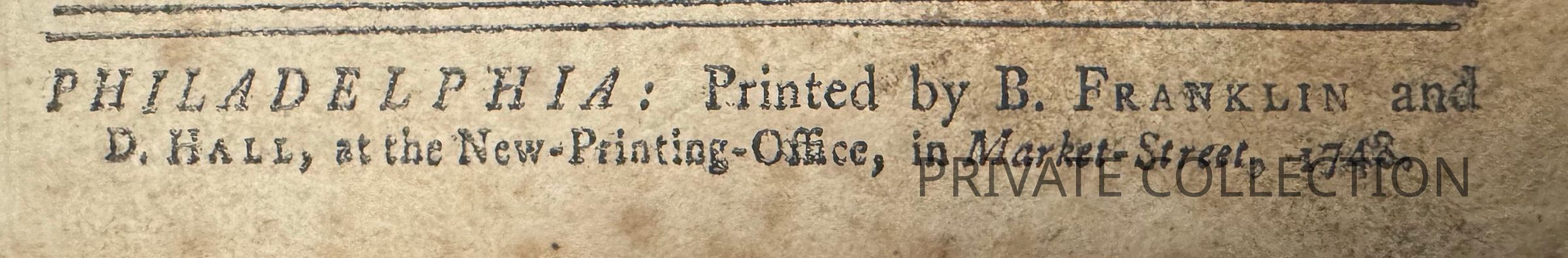 NOTES: Advertised in Pa. Gaz., July 21, 1748, price,
