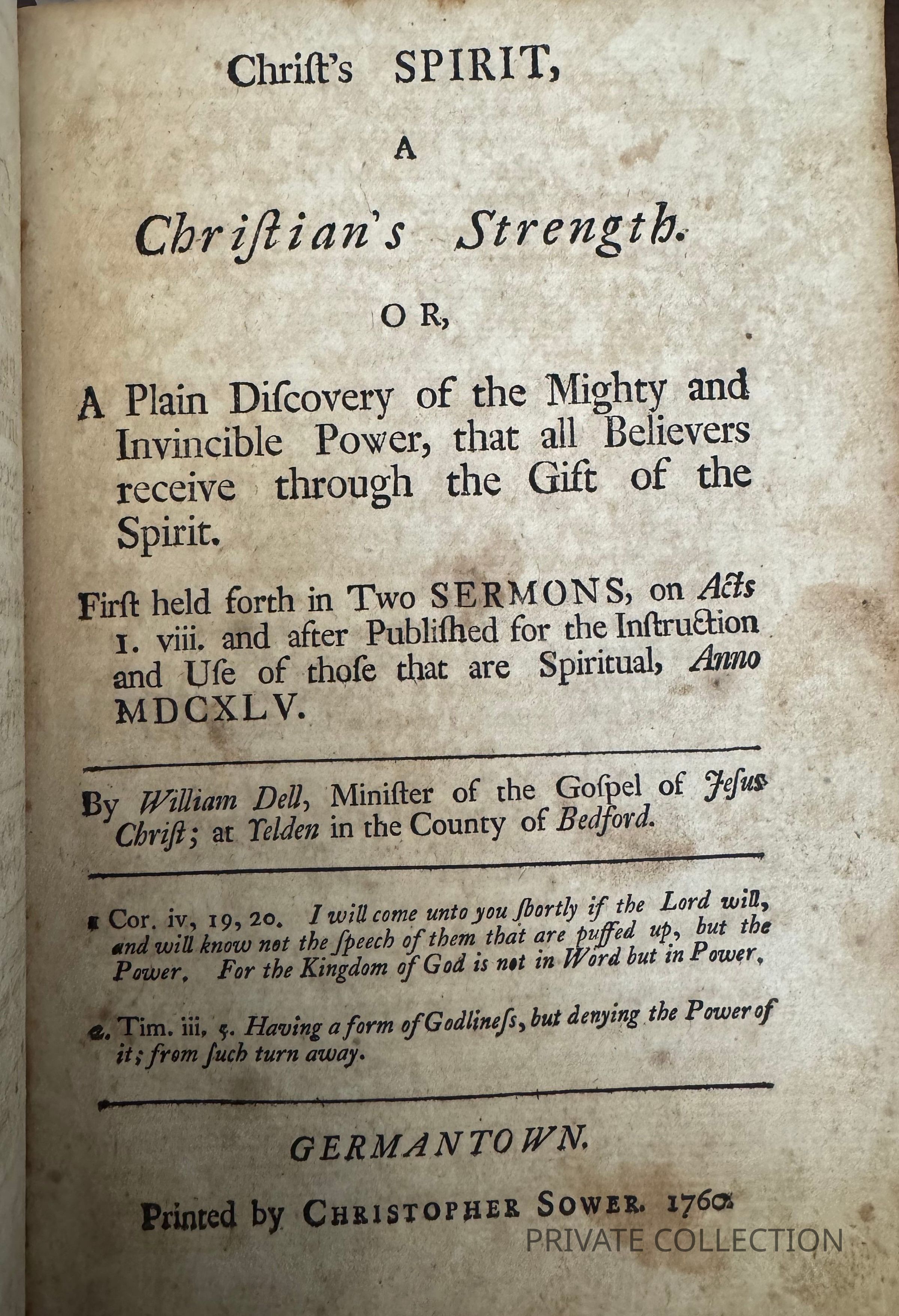 1. William Dell's Doctrine of Baptism (1759, Miller 702);