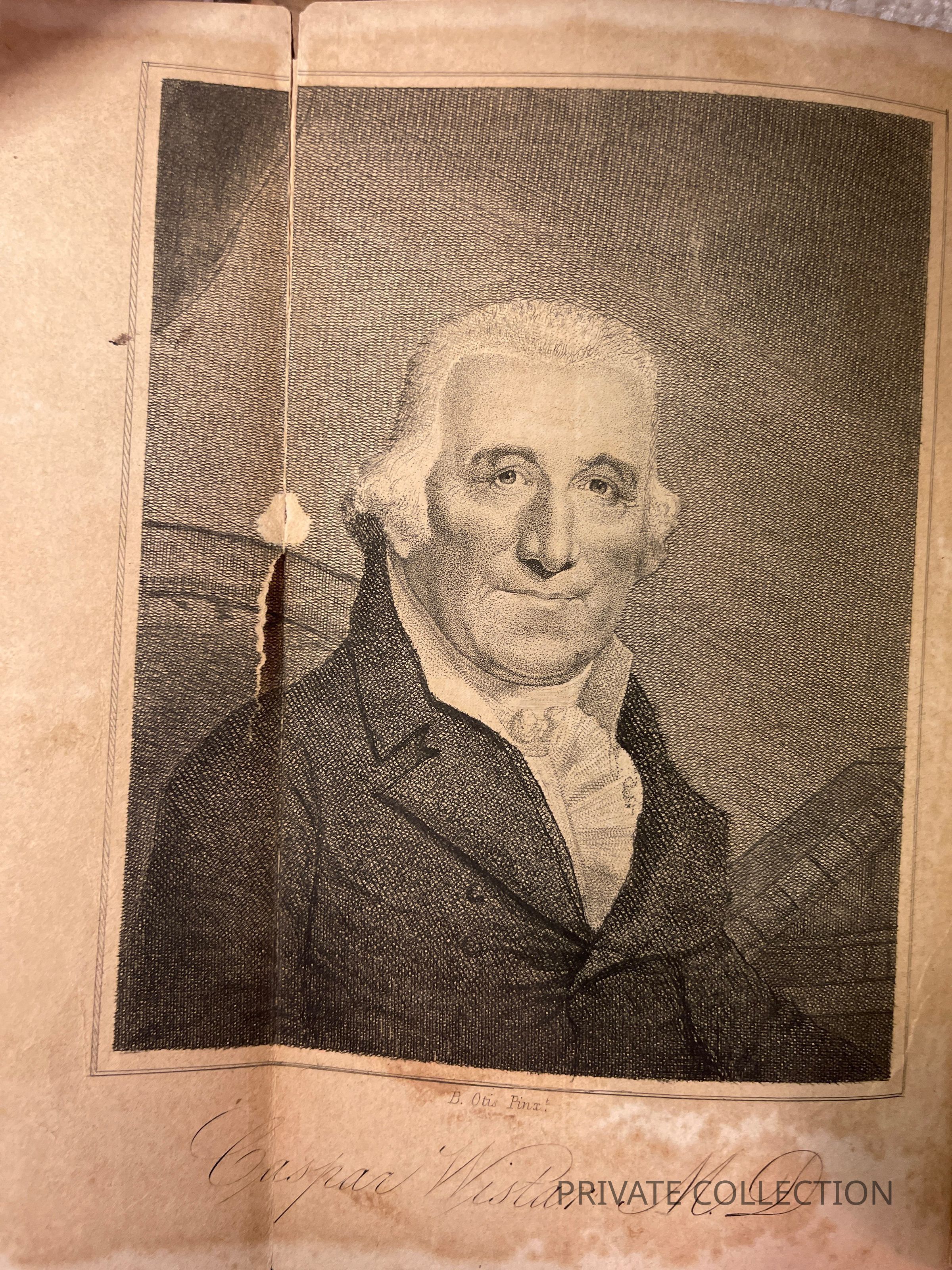 engraving of wistar at front with tear partially on one fold.