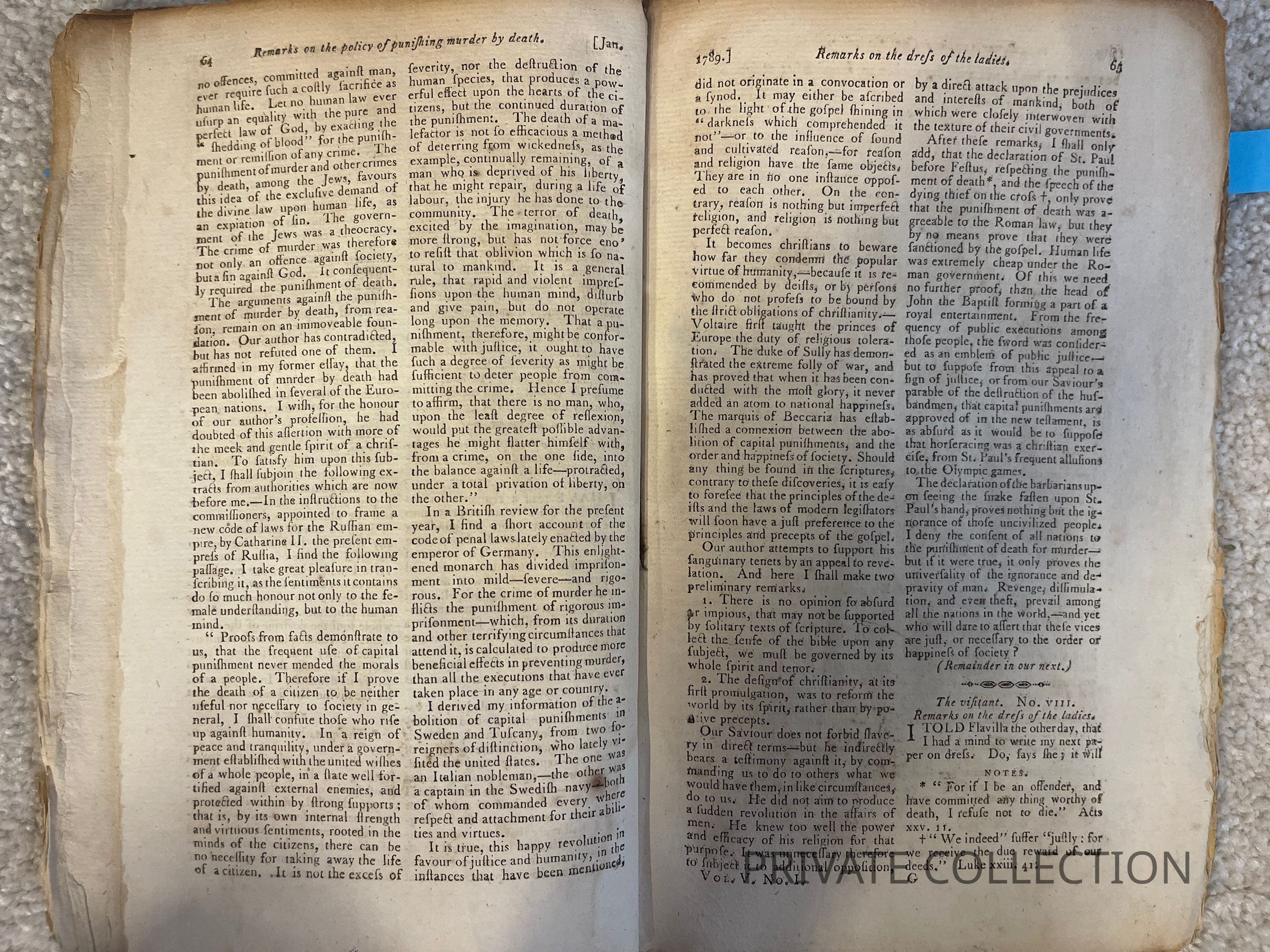 Accused of a dangerous rejection of Mosaic law, BR retorted that 'It becomes Christians to beware how far they condemn the popular virtue of humanity, because it is recommended by deists,' and goes on to cite the contributions of Voltaire, Beccaria, and others." (see also 1788-6)Other Names and Numbers