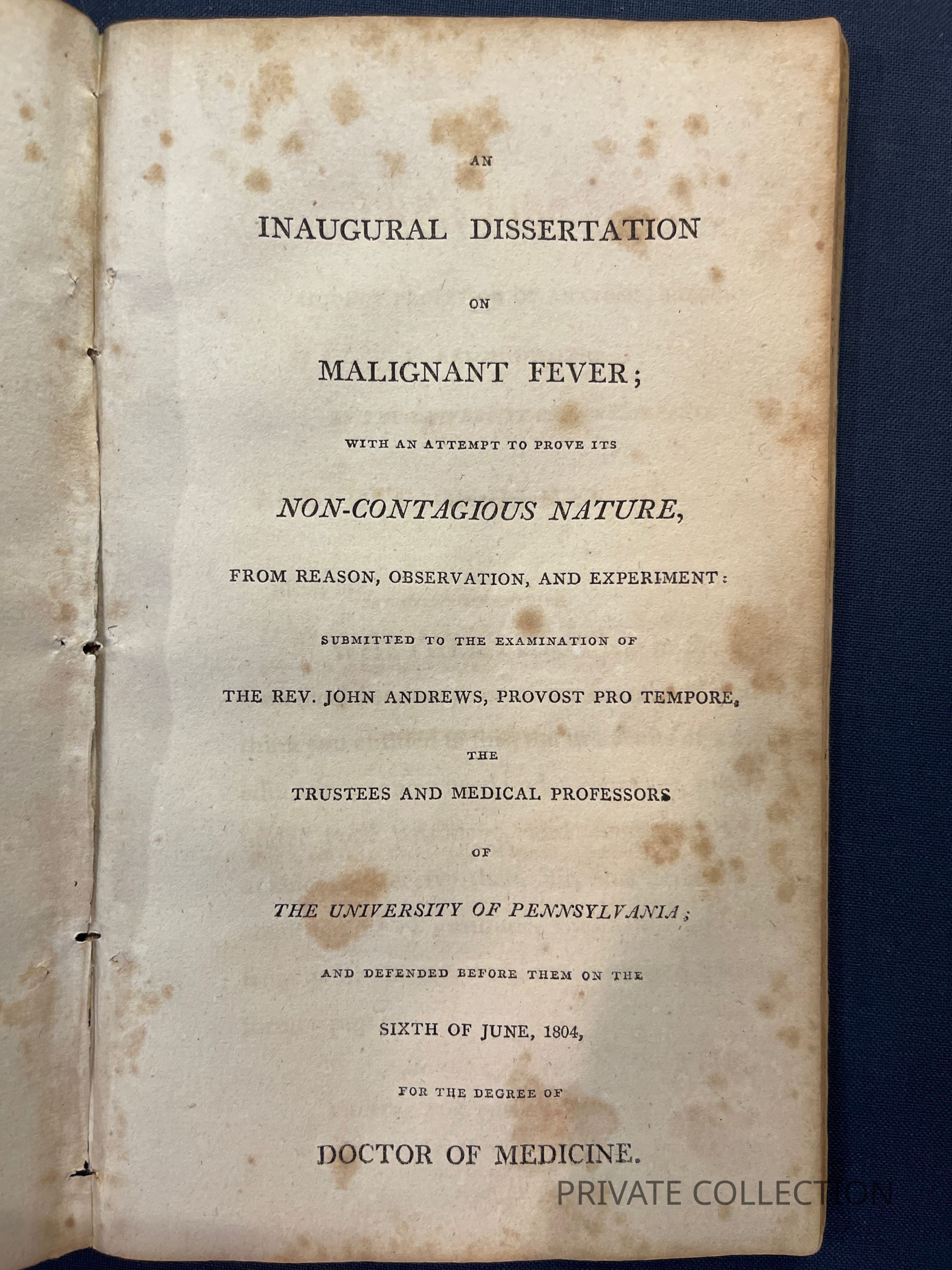 Ffirth published his findings in his 1804 thesis, A Treatise on Malignant Fever; with an Attempt to Prove its Non-contagious Non-Malignant Nature.Other Names and Numbers