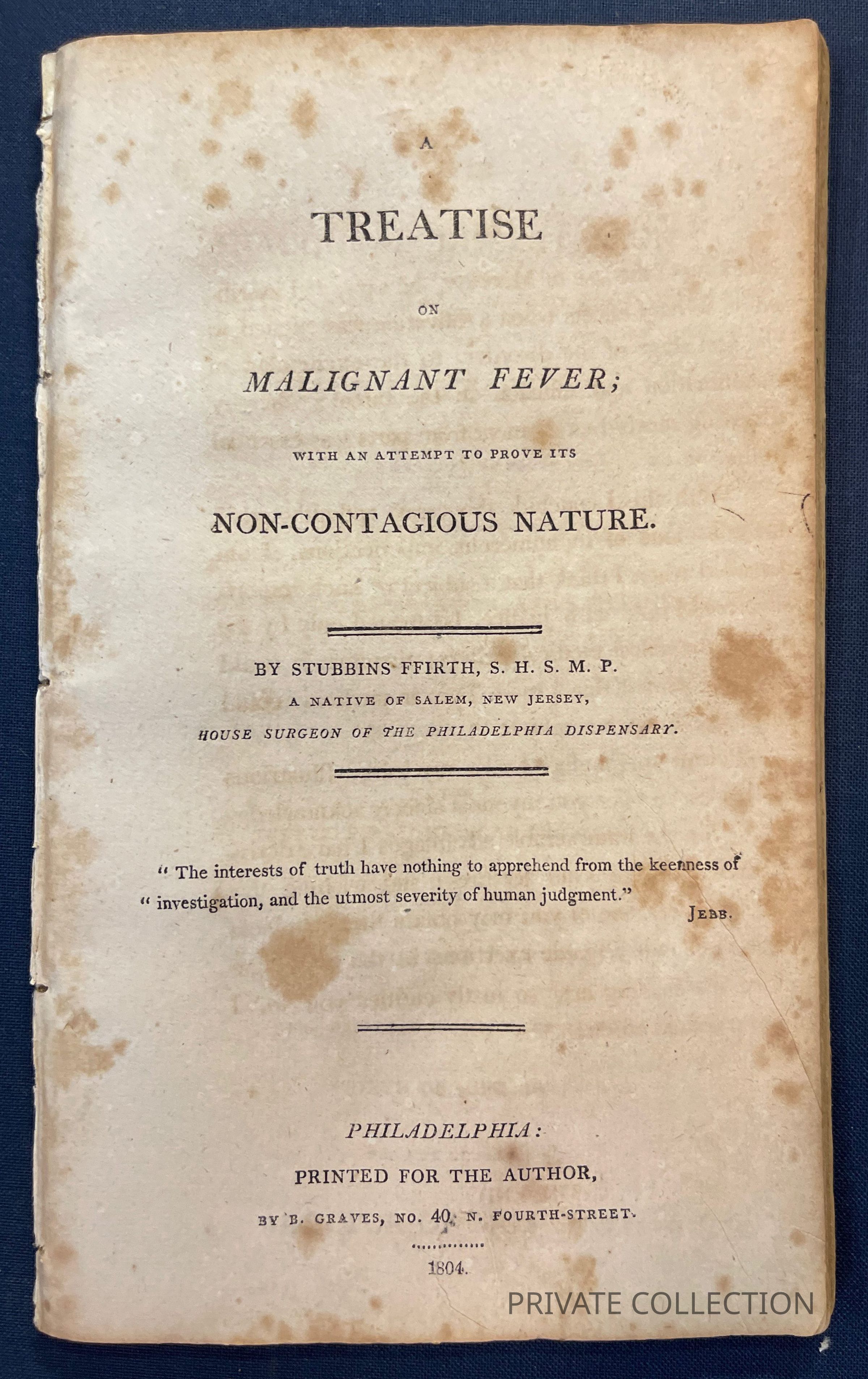 Ffirth published his findings in his 1804 thesis, A Treatise on Malignant Fever; with an Attempt to Prove its Non-contagious Non-Malignant Nature.Other Names and Numbers