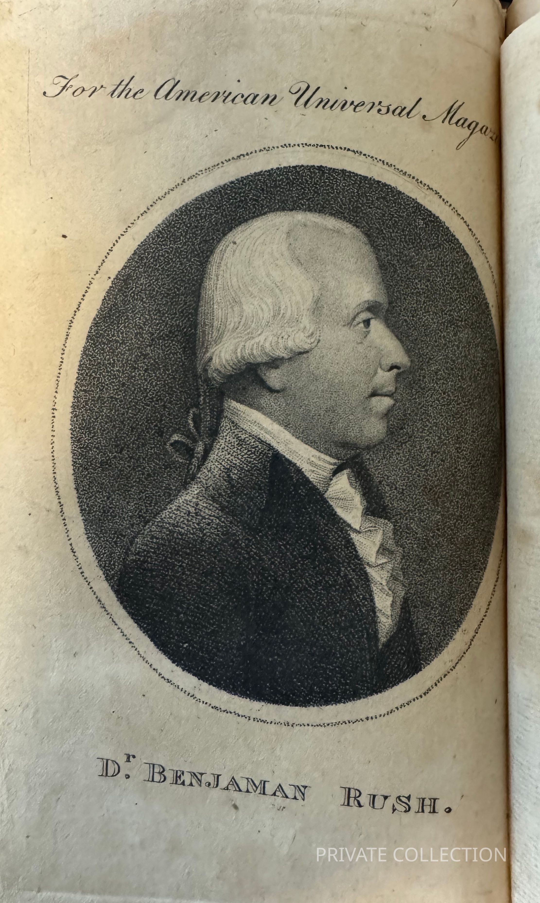 Short lived magazine published from 1797-1798 in Philadelphia by Richard Lee. This volume with a rare portrait of Rush, one that is not typically seen and was engraved specifically for this volume.