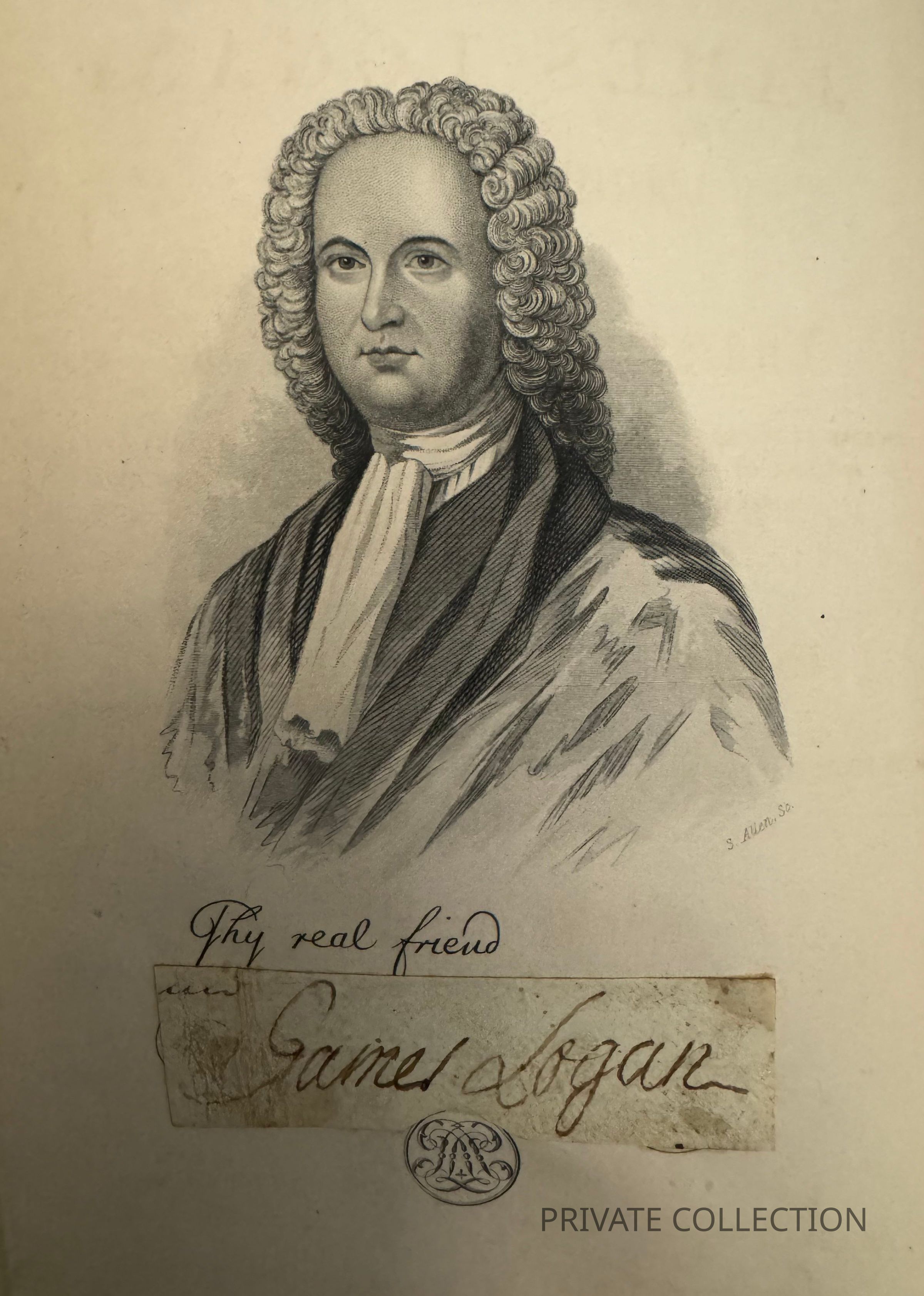 James Logan, 1674-1751, was a colonial statesman, administrator, and notable book collector. He served as secretary to William Penn and in 1722 he became the 14th Mayor of Philadelphia. He was a founding partner of the College of Philadelphia and was influential in the establishment of the city of Philadelphia. Of particular mention, Philadelphia. During his tenure as mayor, allowed Irish Catholic immigrants to participate in the city's first public mass.