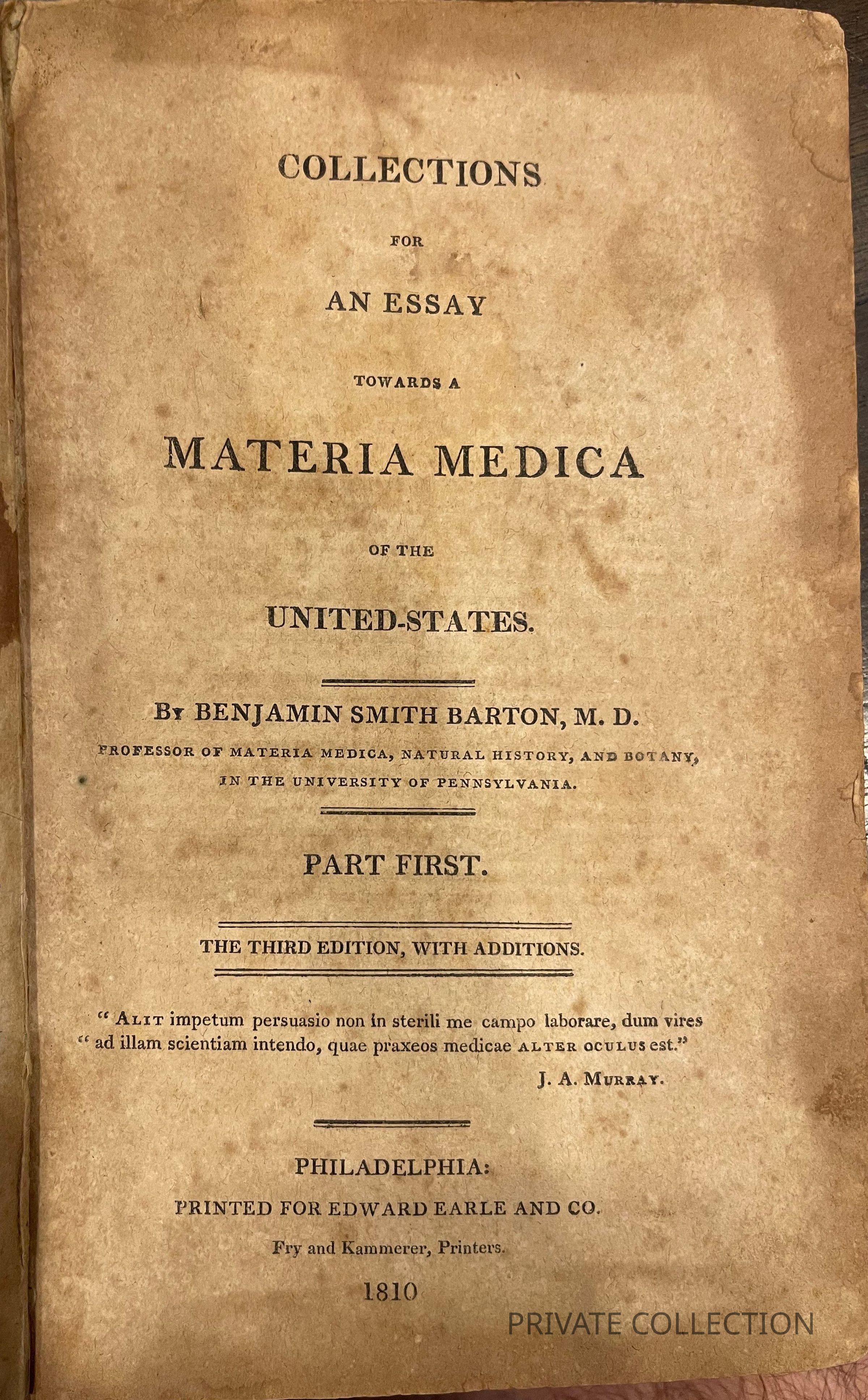 The original edition published in 1798 was Barton's fist separate publication on plants and stands as a most important early American work of medical botany.