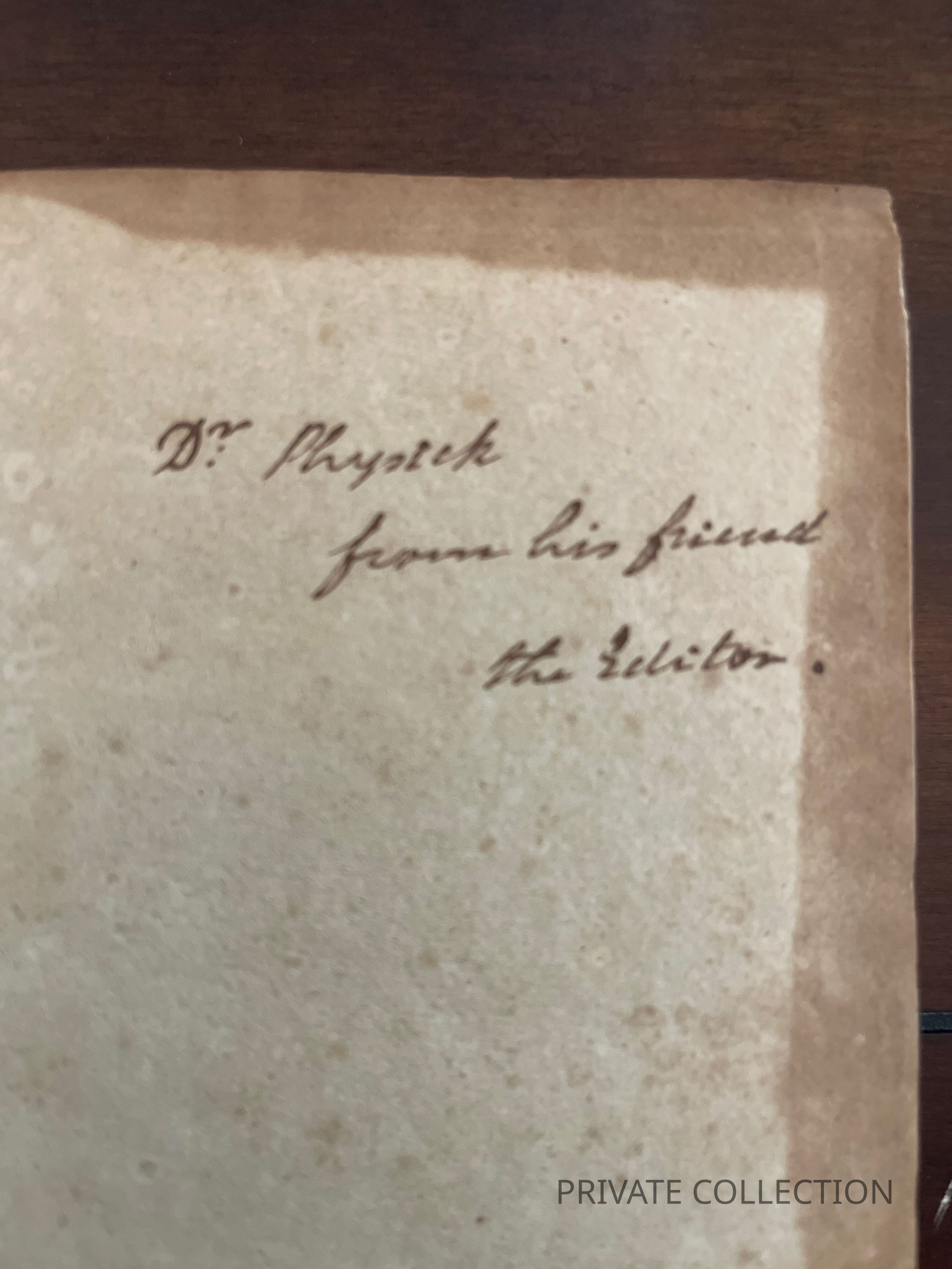 Inscribed by Rush to Dr. Philip Syng Physick. "Dr. Physick from his friend the Editor."