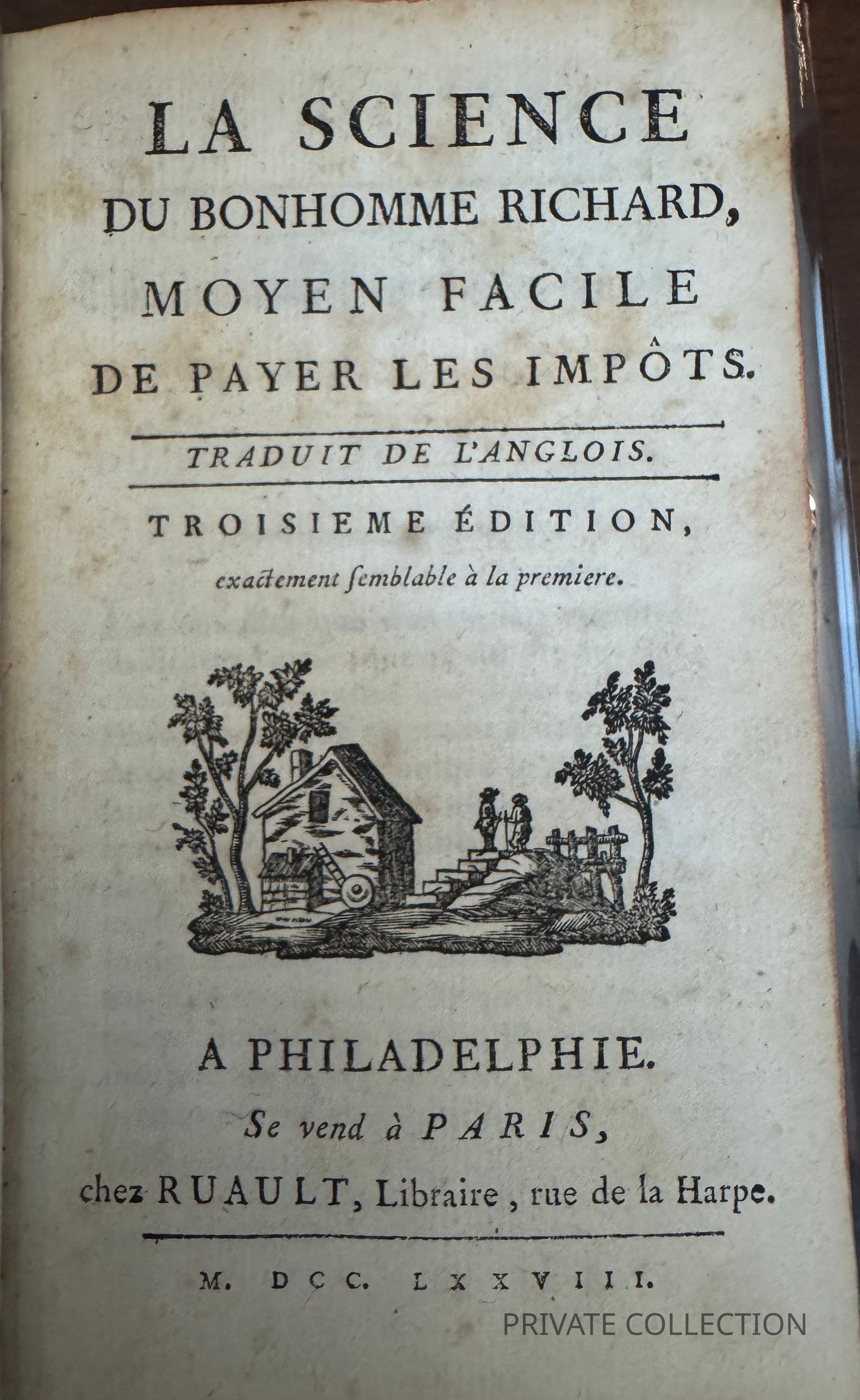[FRANKLIN, Benjamin]. La Science Du Bonhomme Richard, Moyen Facile De Payer Les Impots. Philadelphia [but actually Paris]: Chez Ruault, 1778.