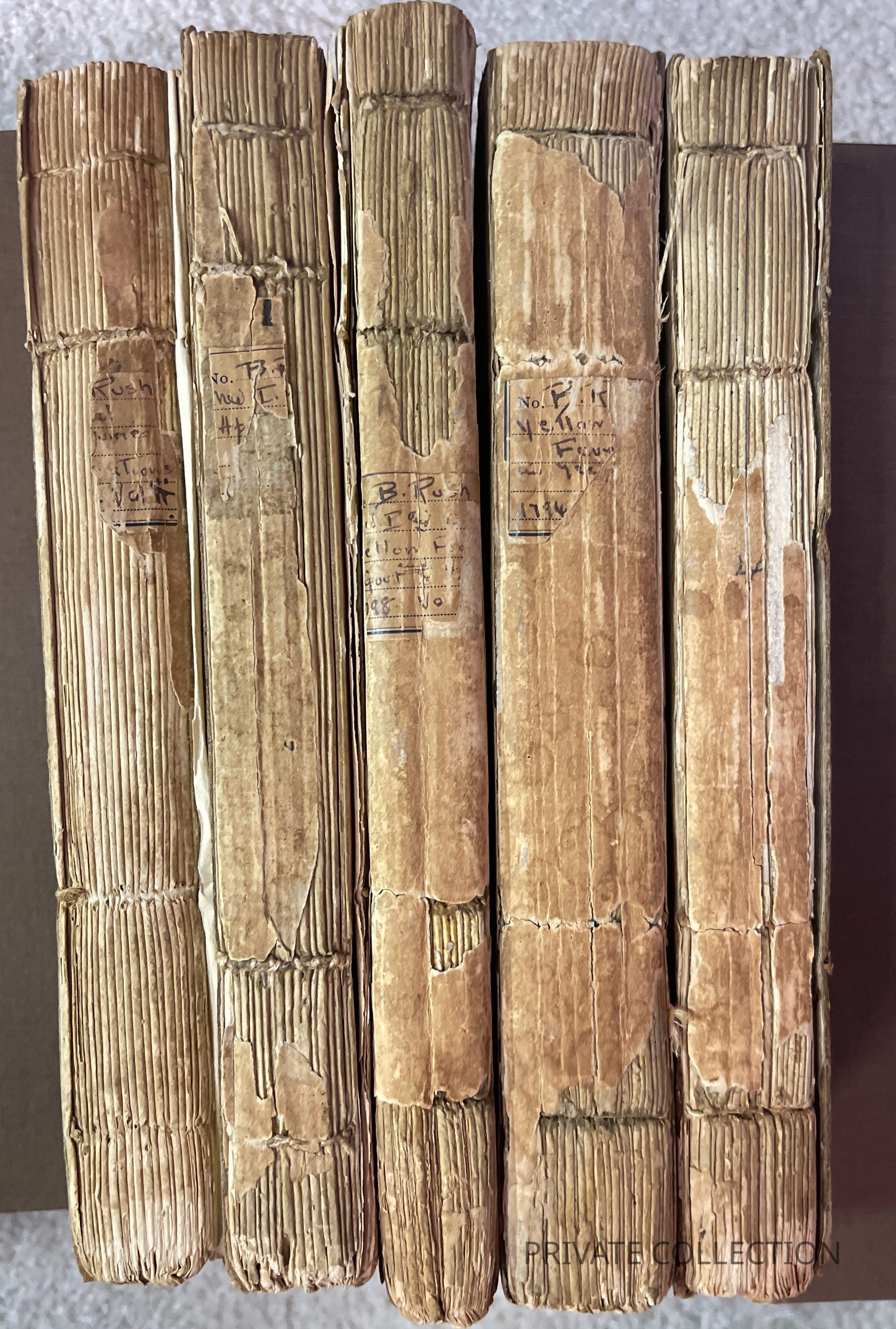 "Rush was considered the ablest American clinician of his time. He was a friend of Benjamin Franklin and one of the signatories of the Declaration of Independence. His many writings are distinguished for their classical style ... Rush probably had more influence on American medicine than any other single man."--Garrison and Morton, 80. The first two volumes consist of essays covering a wide variety of subjects, such as the history of medicine among the indians, the climate of Pennsylvania, diseases prevalent during the Revolution, the effects of spirits on the mind and body, old age, the duties of the physician, as well as observations on such diseases as pulmonary consumption, dropsy, gout, hydrophobia, measles, and influenza. Volumes Three, four, and Five are almost entirely devoted to Rush's writings concerning the yellow fever. Rush's description of dengue, "bilious remitting fever," is one of the first important accounts of the disease.