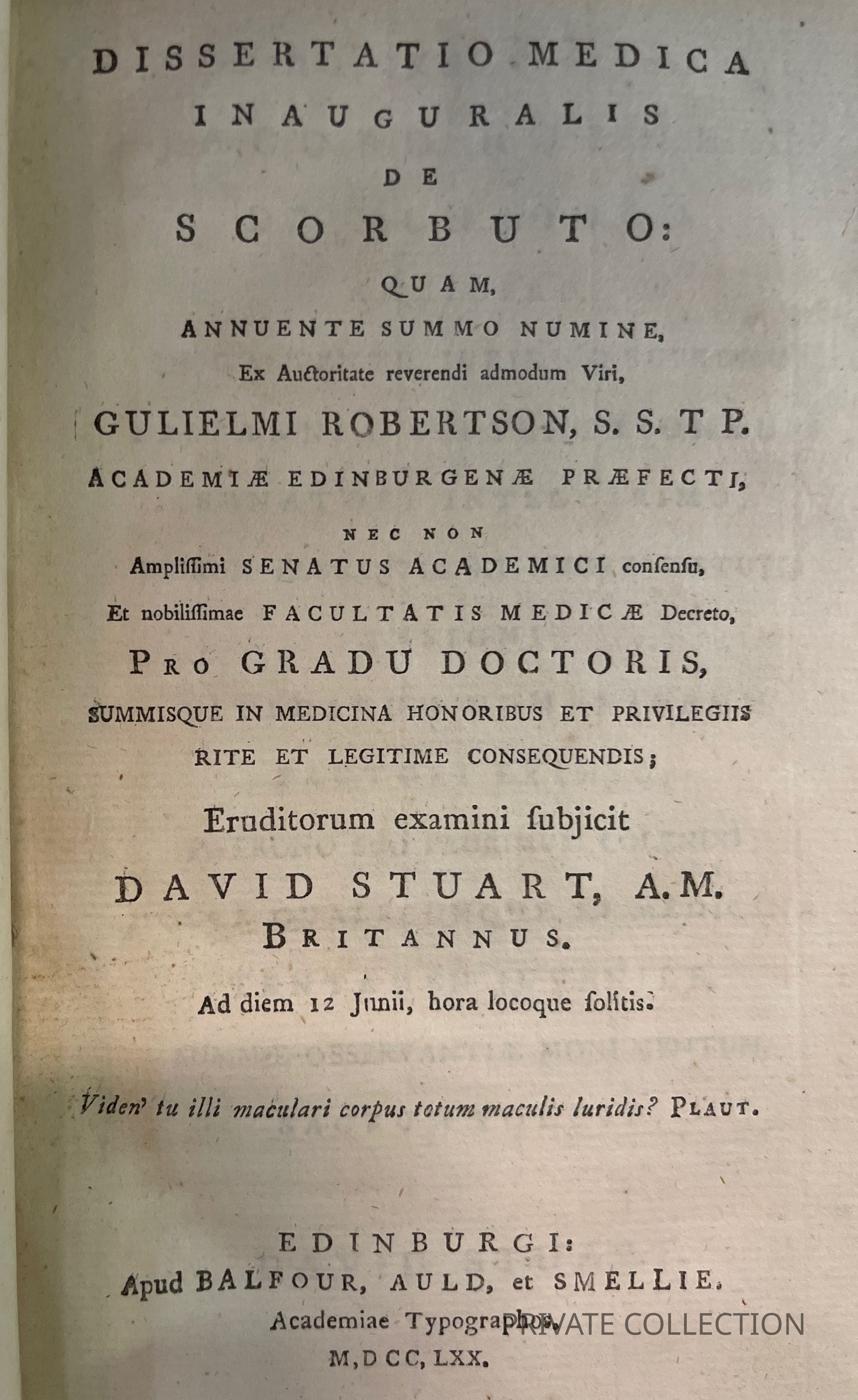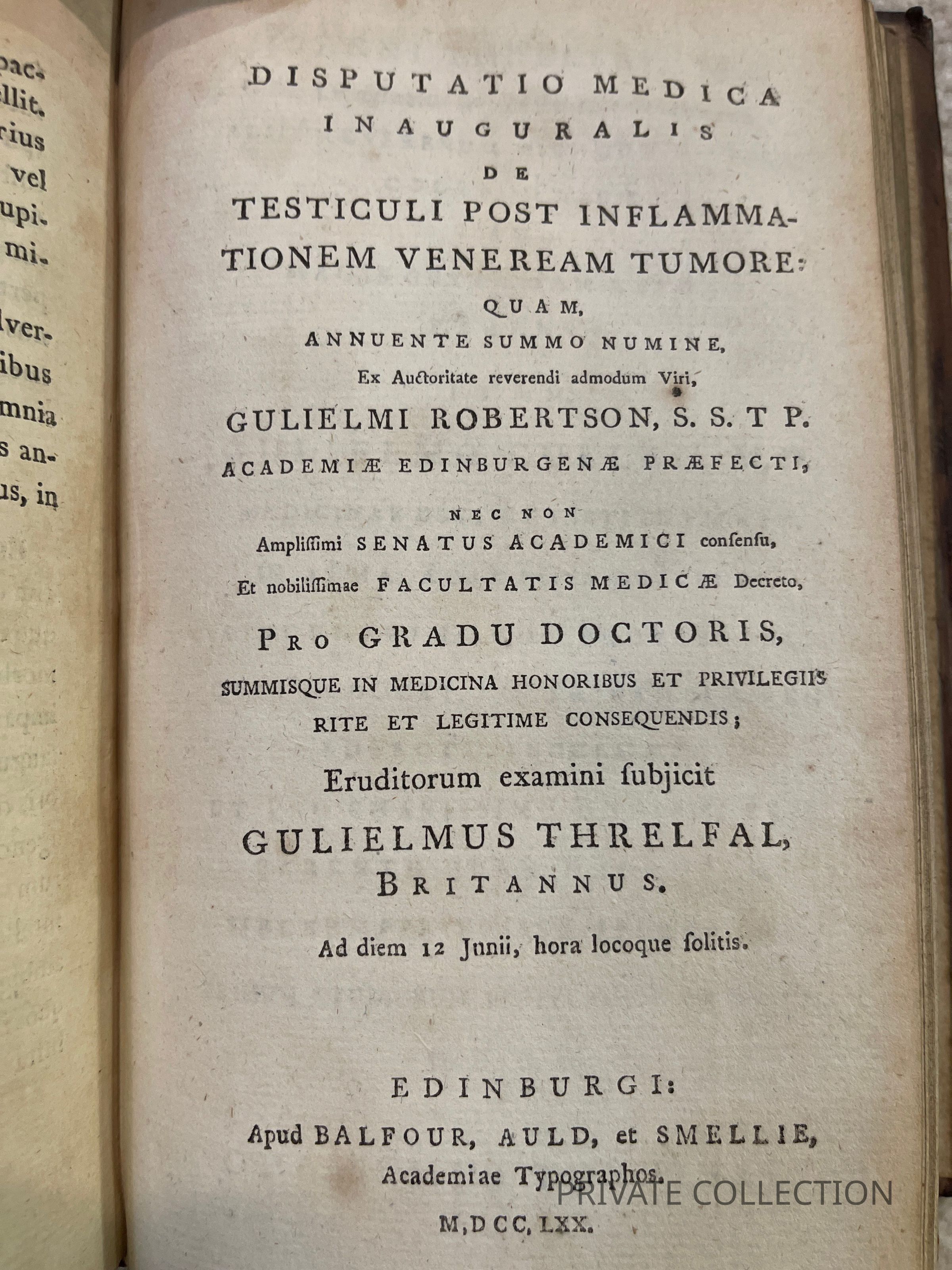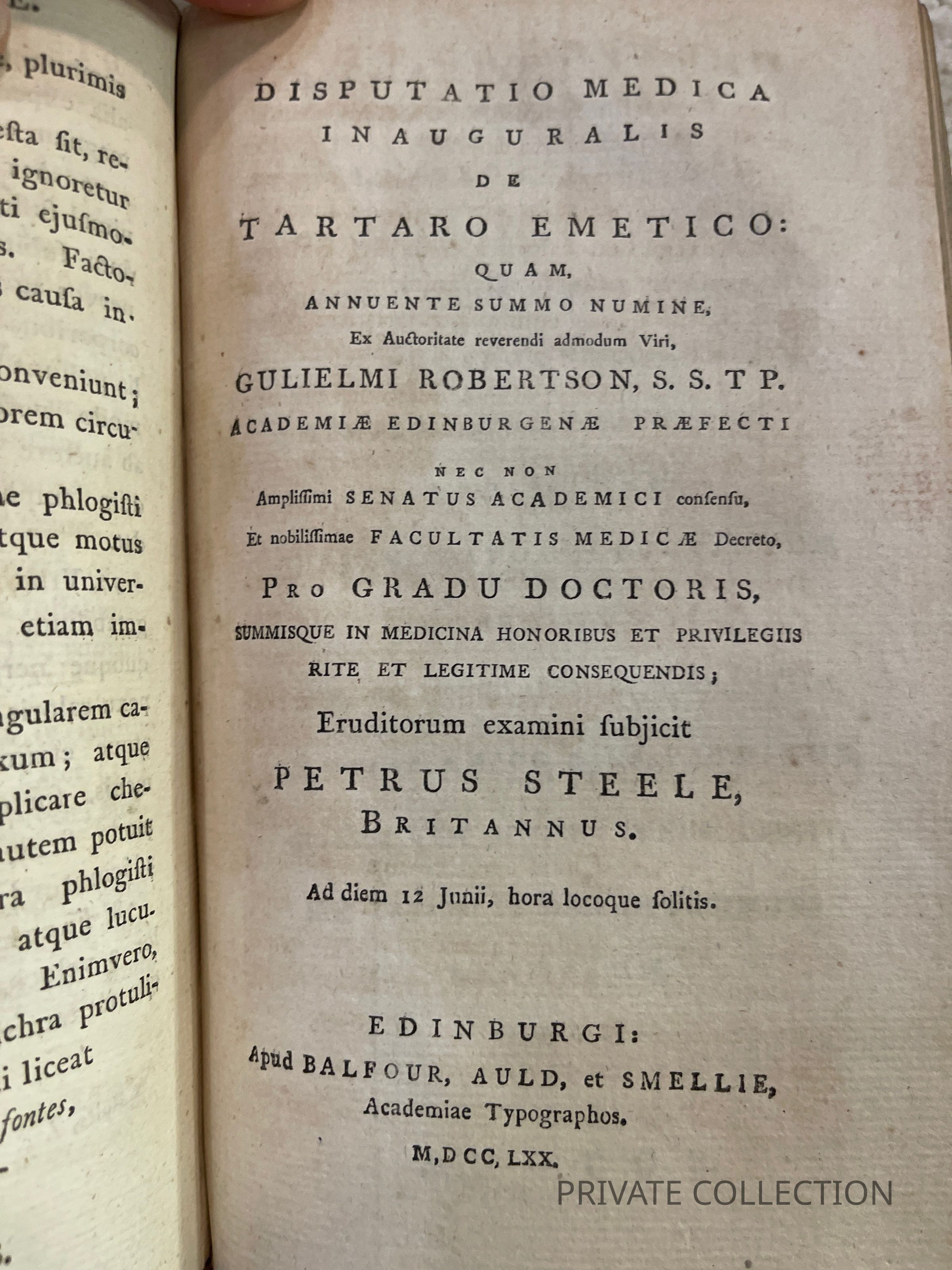 The sammelband was most likely put together by the University of Edinburgh for the graduating class of 1770. A very rare compilation of medical dissertations with important connections to the American Revolution.