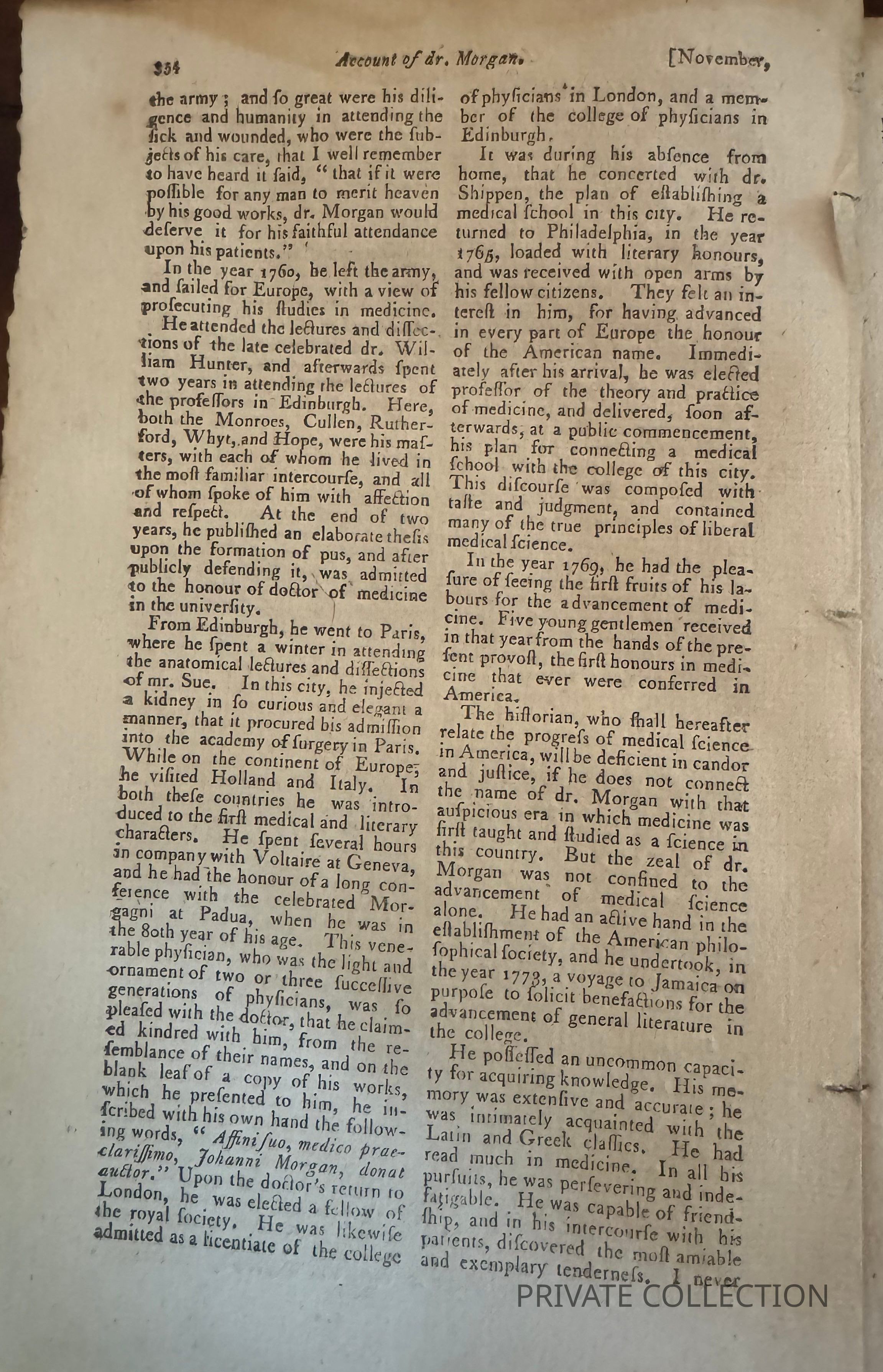 Among the many articles noted on the full title/contents page are an article with a rare illustration (seldom found in 18th century American magazines) of: "...a black boy without arms belonging to Mrs. Alexander..."; "Creoles of St. Domingo" "The Ancient Welsh" "Oration in Praise of Drunkenness" "Address of...the Presbyterian Church...to the President of the United States" which is followed by his "Answer" signed in type: G. Washington. "Education of Negro Children" and "An Address...from the Penna. Society for Promoting the Abolition of Slavery & the Relief of Free Negroes Unlawfully held in Bondage" which is signed in type by: B. Franklin, President.