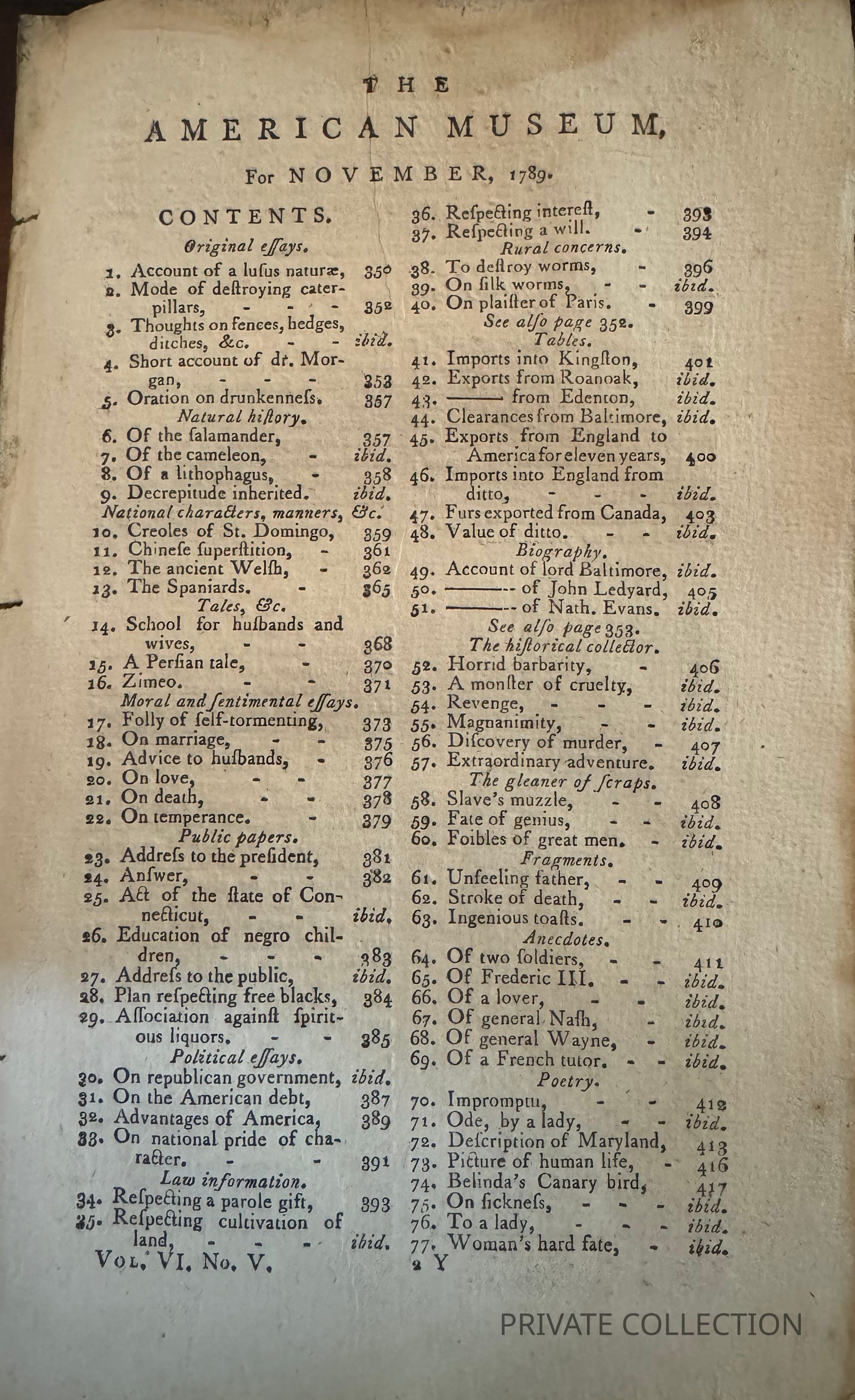 THE AMERICAN MUSEUM, Philadelphia, November, 1789 This was one of the more successful titles.