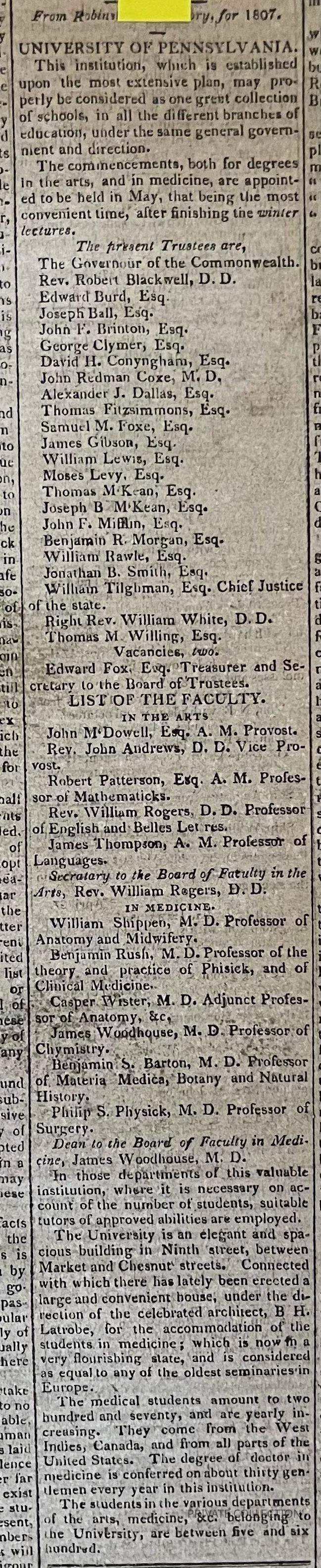 Benjamin Rush, Caspar Wistar, Robert Patterson, William Shippen, Jr., Philip Syng Physick, Benjamin Smith Barton, Jacob Woodhouse, John Dorsey