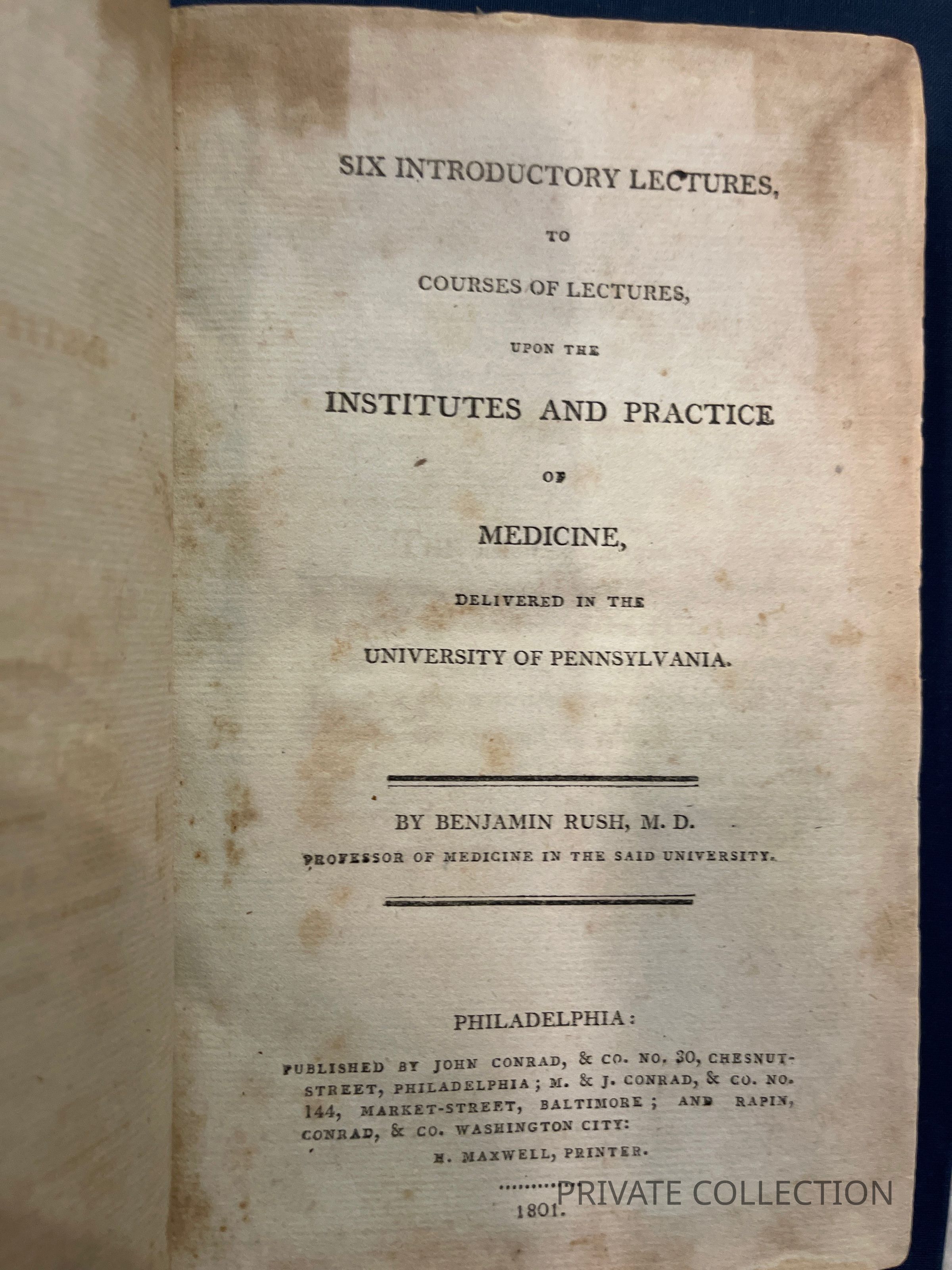 Six Introductory Lectures upon the Institutes and Practice of Medicine Delivered to the University of Pennsylvania. (1801)