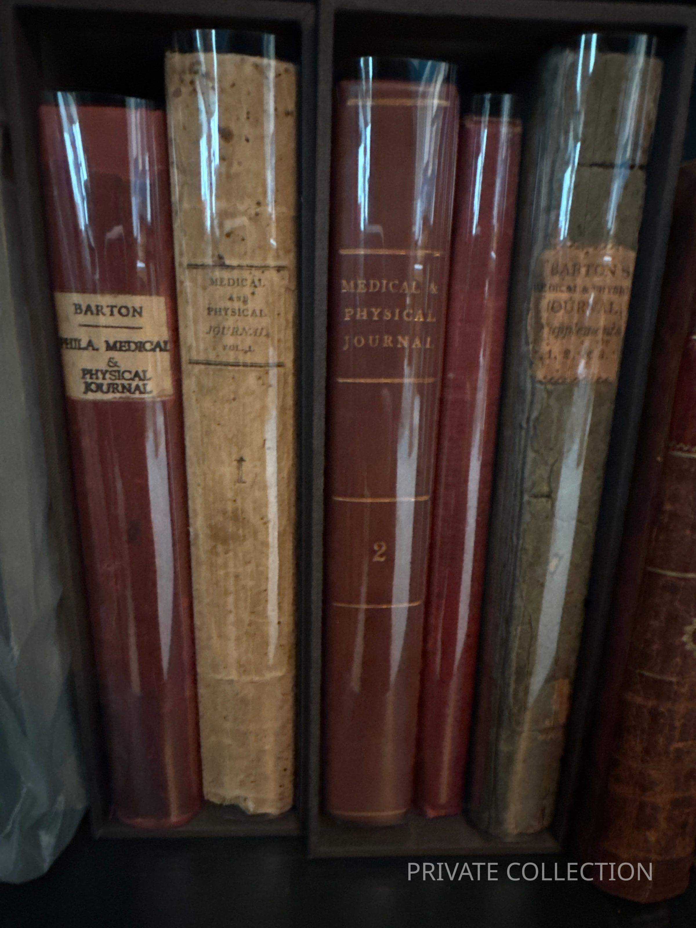 Extraordinarily rare. No auction records of the complete series ever recorded, with almost no records of the third and supplement volumes. The third volume, stated part one but actually complete, shows no OCLC holdings. The first to third supplements list only two holdings. All volumes of the journal were founded and edited by Benjamin Smith Barton the prominent American botanist and physician.Other Names and Numbers