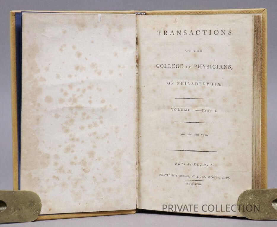Rush, Benjamin. TRANSACTIONS OF THE COLLEGE OF PHYSICIANS OF PHILADELPHIA. Volume 1, Part 1.