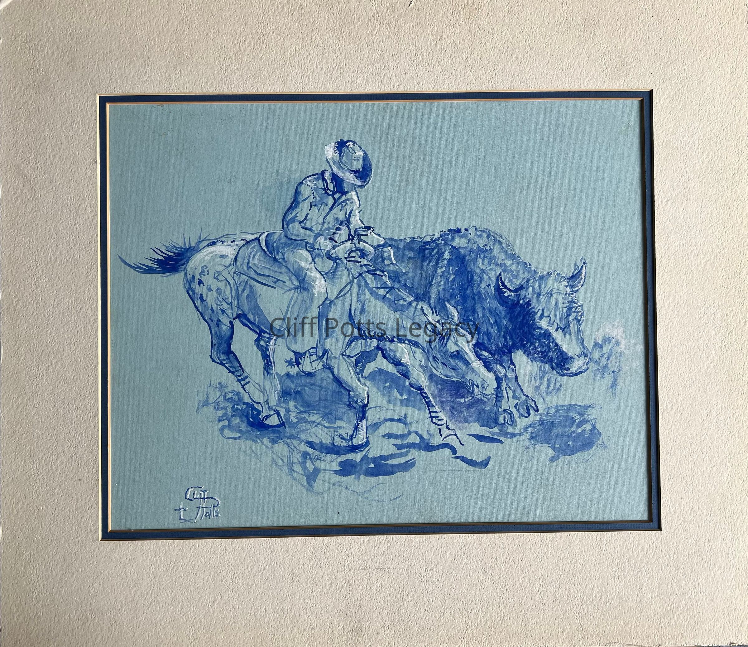 Watercolor horse steer blue