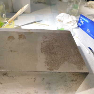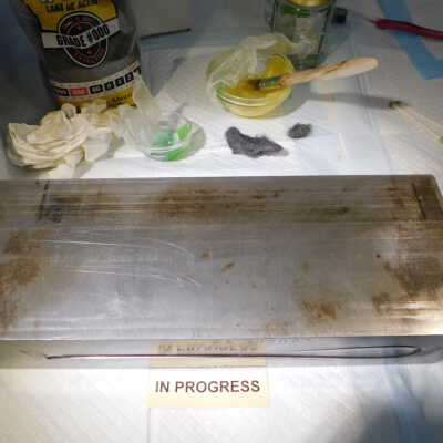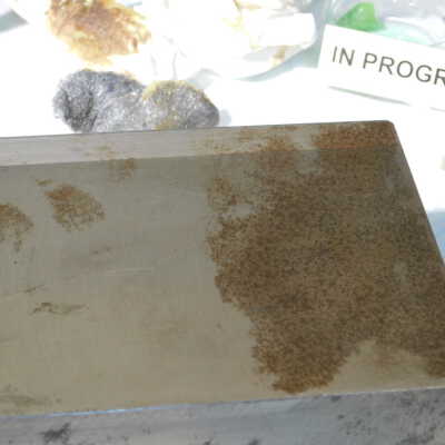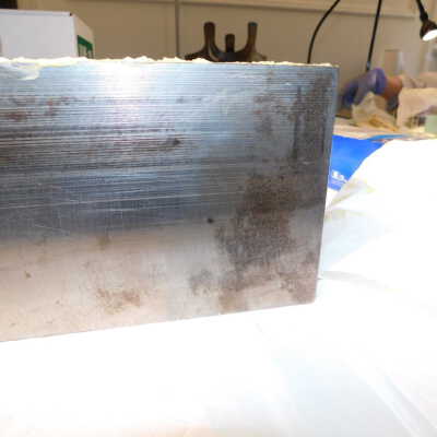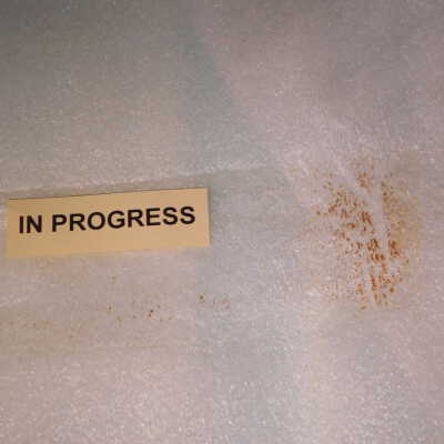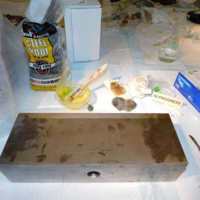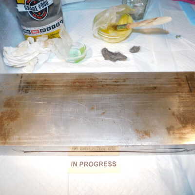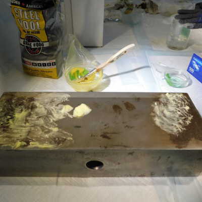 Beginning decorroding process using magic butter Renaissance decorroder applied with steel woolAcute Treatment