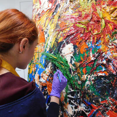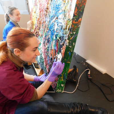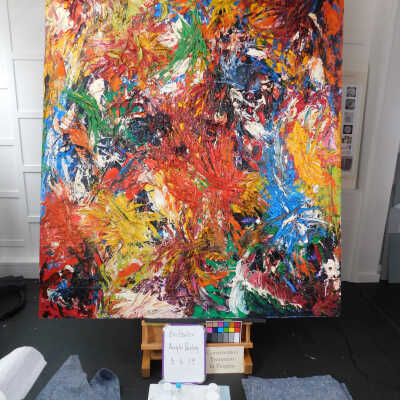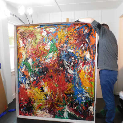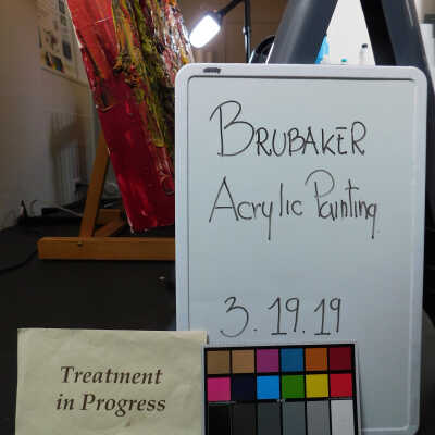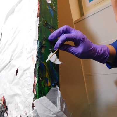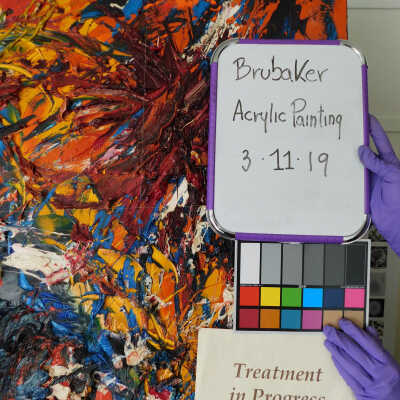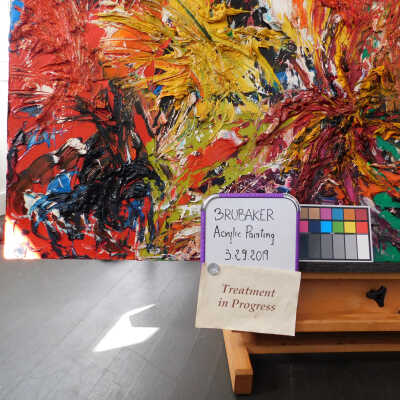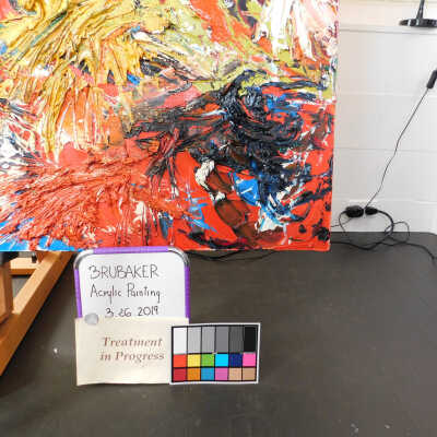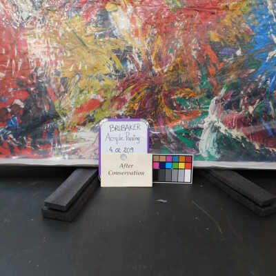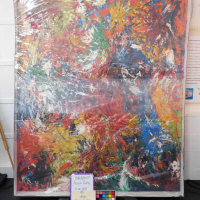 Brush vacuumed front an back of canvas/painting.Acute Treatment