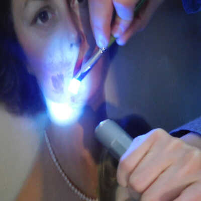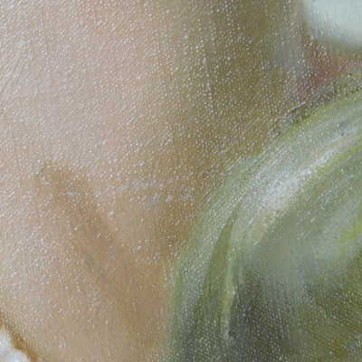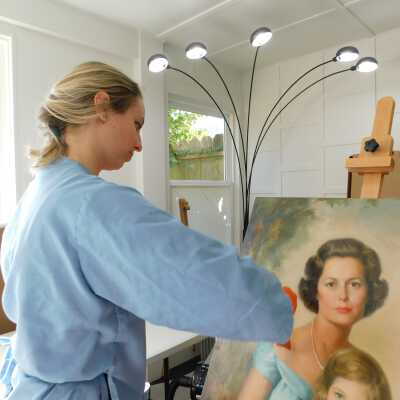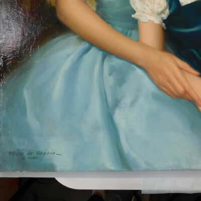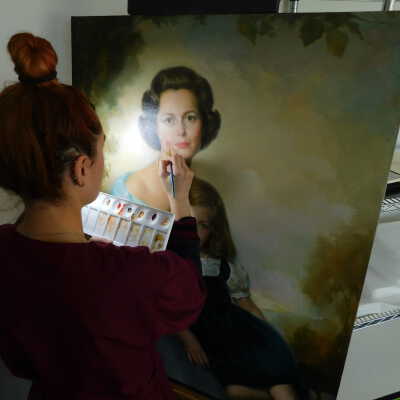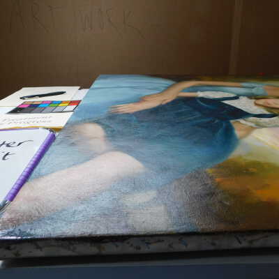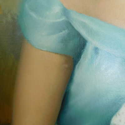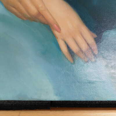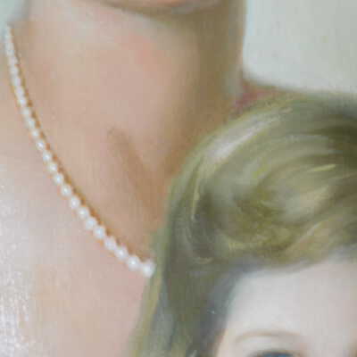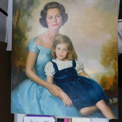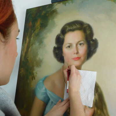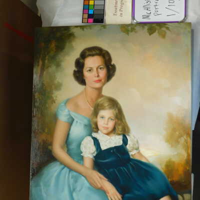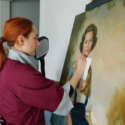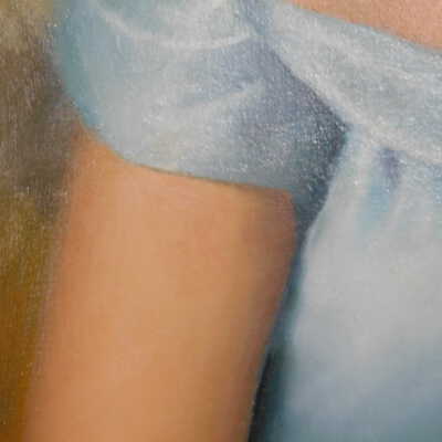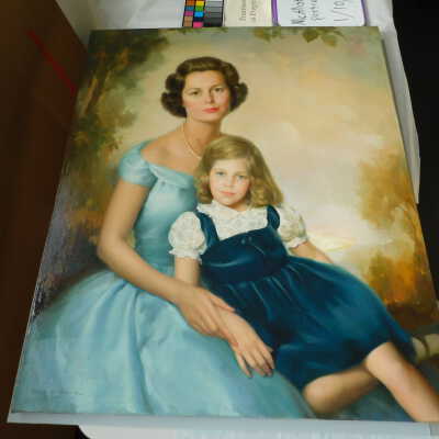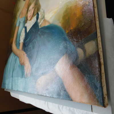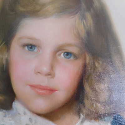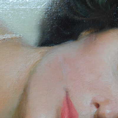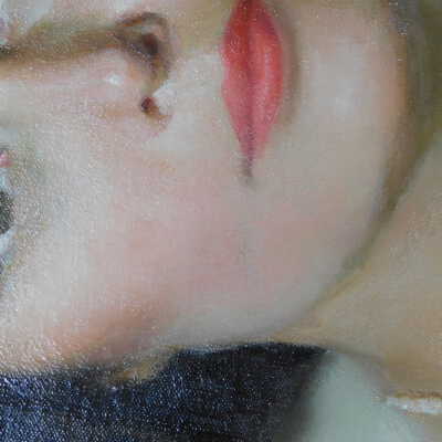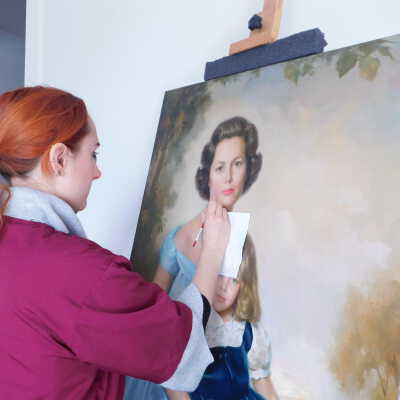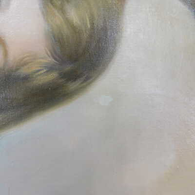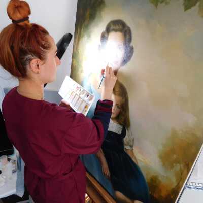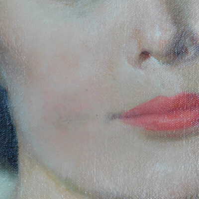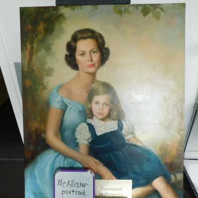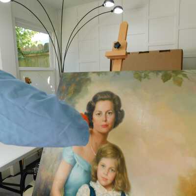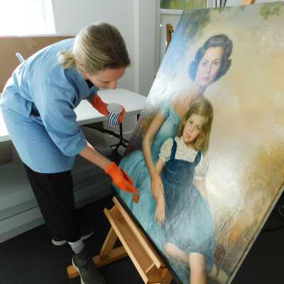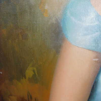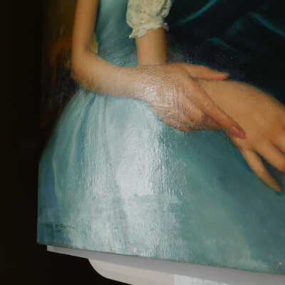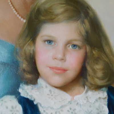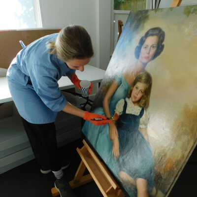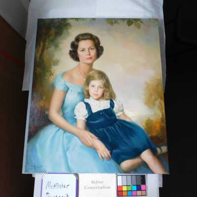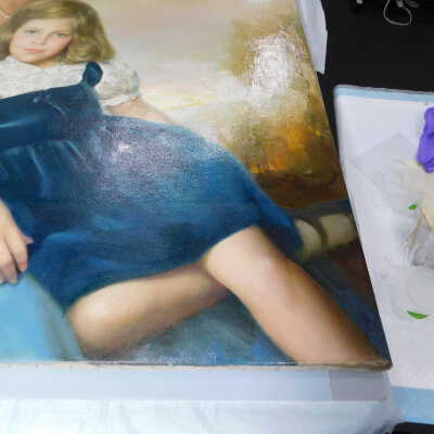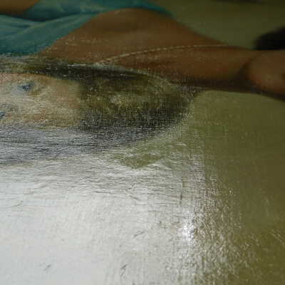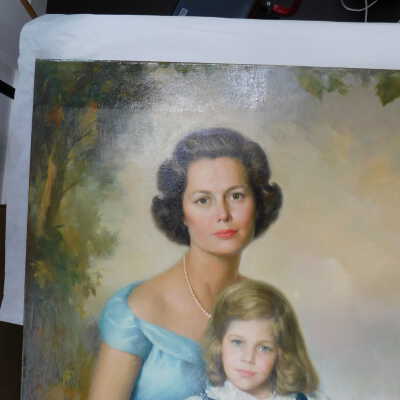 Photographs taken. Consolidations of lifting cracks in girl’s face using 3:1 Beva 371: Naptha, syringed into cracks and set with heat spatula to 150 degrees.Acute Treatment