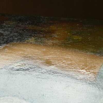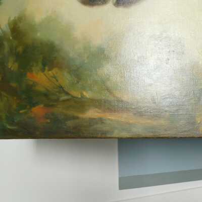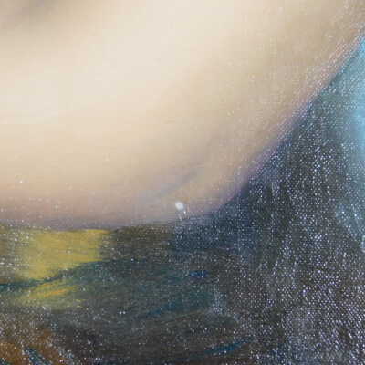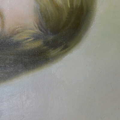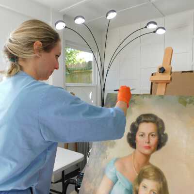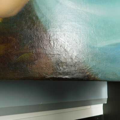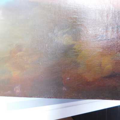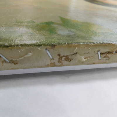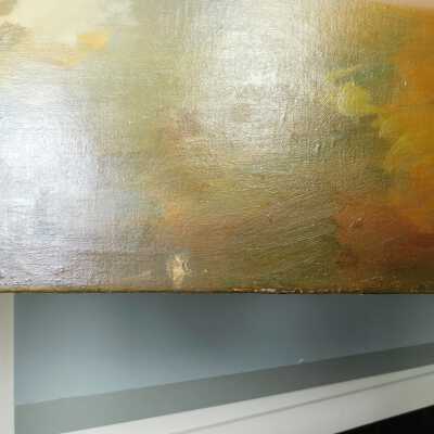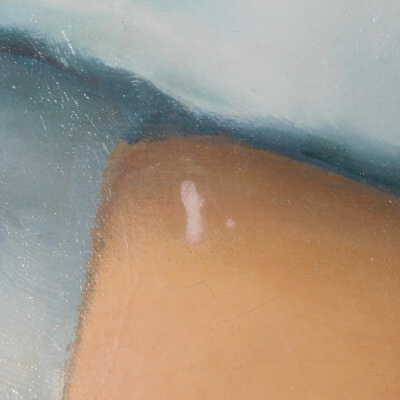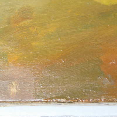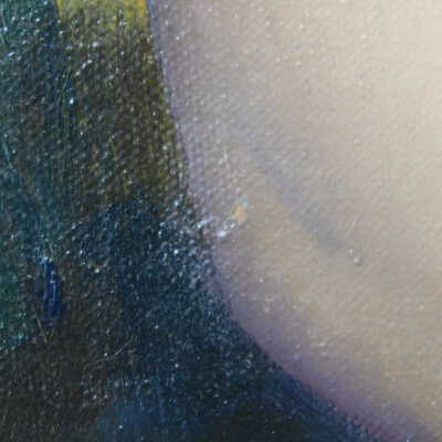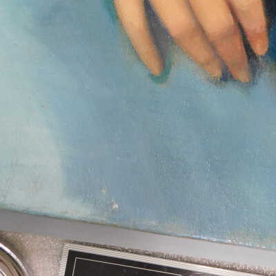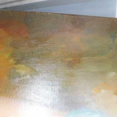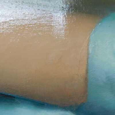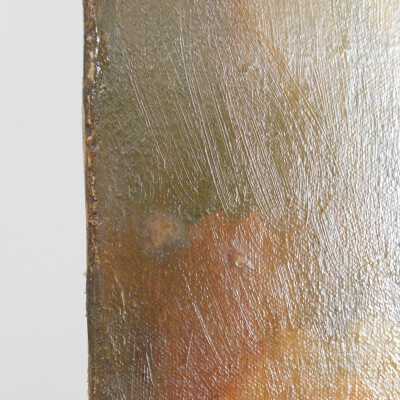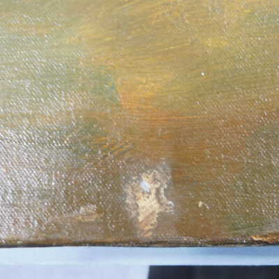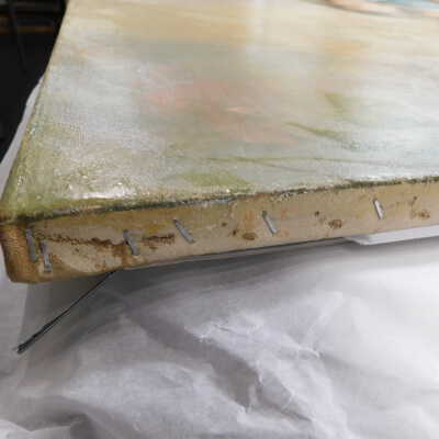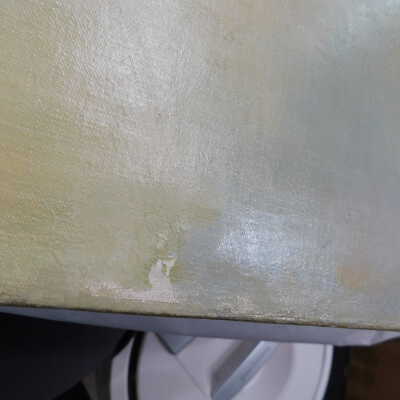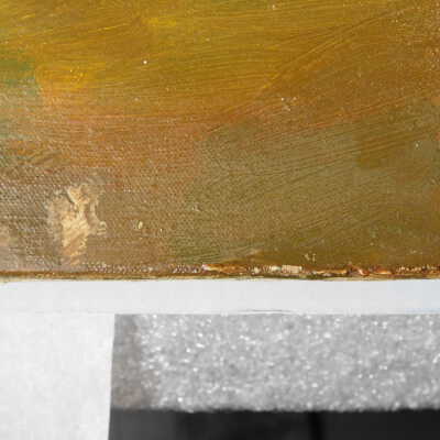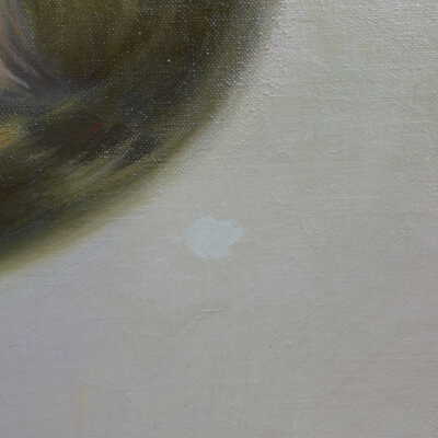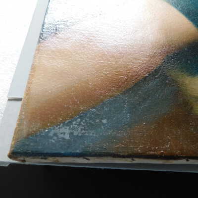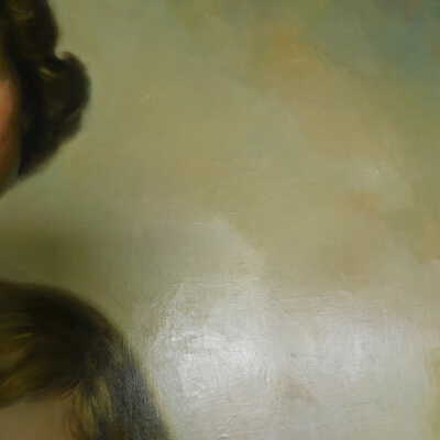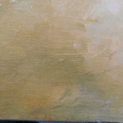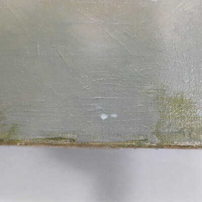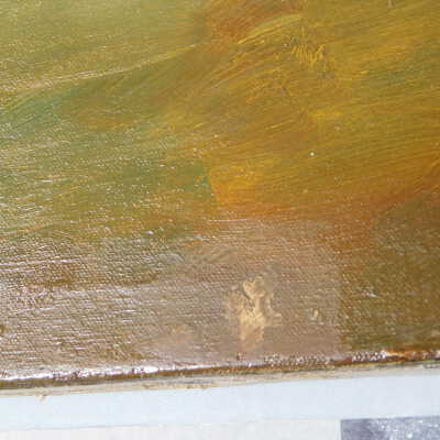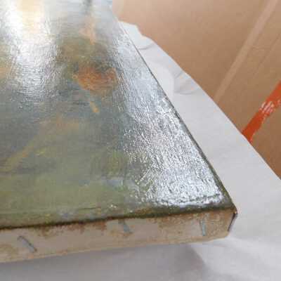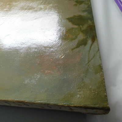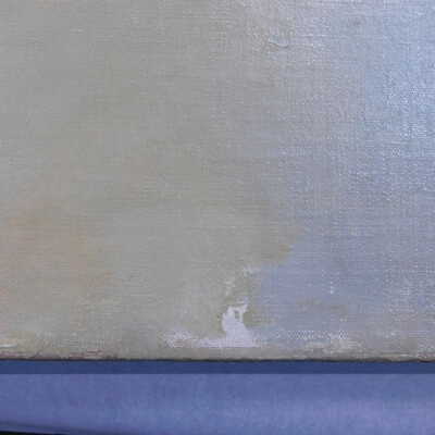 Remove varnish using solvent, especially areas of pooled varnish and where cracks are lifting to remove lint and trapped flyspecks and other materials in varnish. Added matte varnish. Potential for further consolidation.Acute Treatment