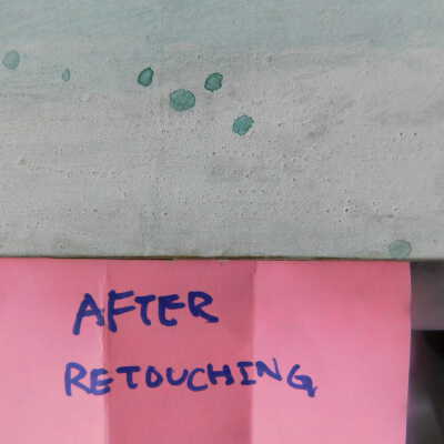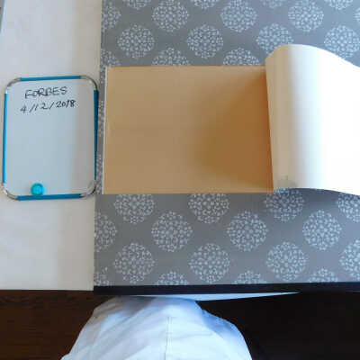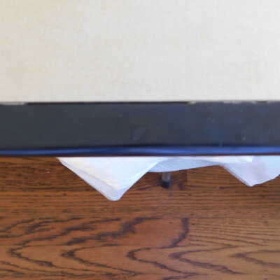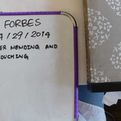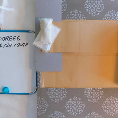 Surface cleaning of two holes on the screen with a soft brush. Set up tables and foam to rest the screen open face.Acute Treatment