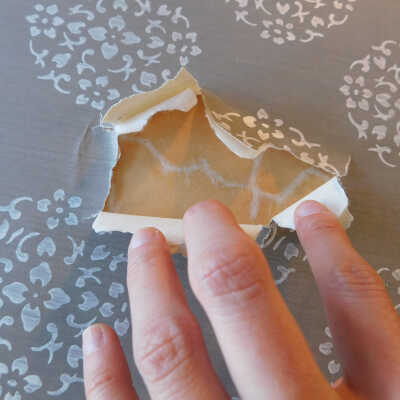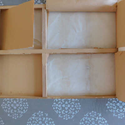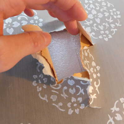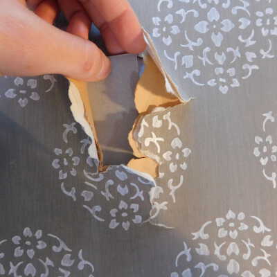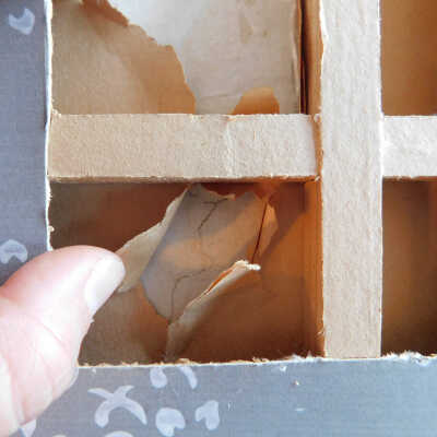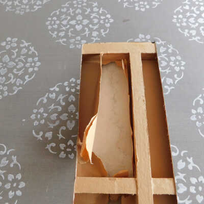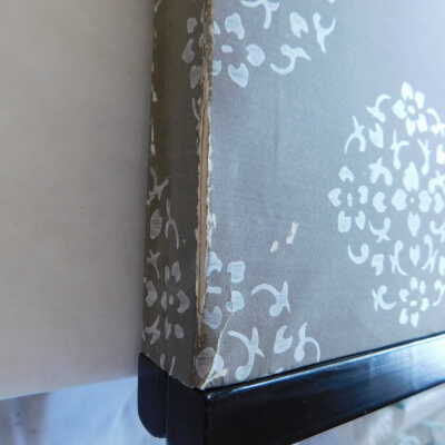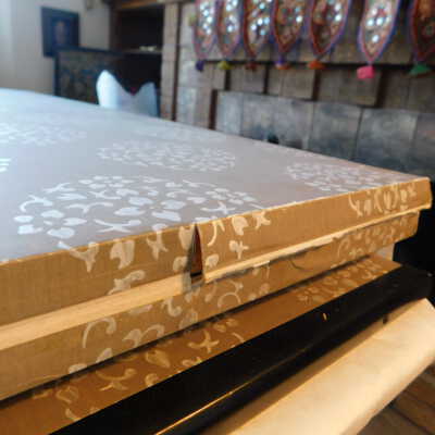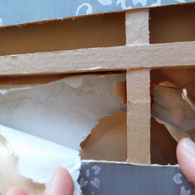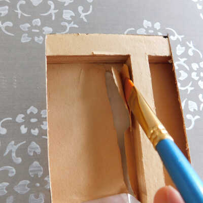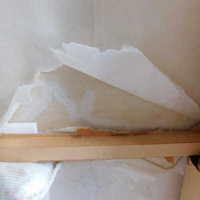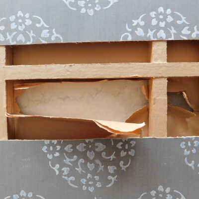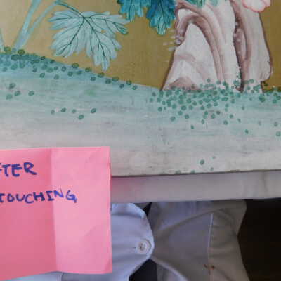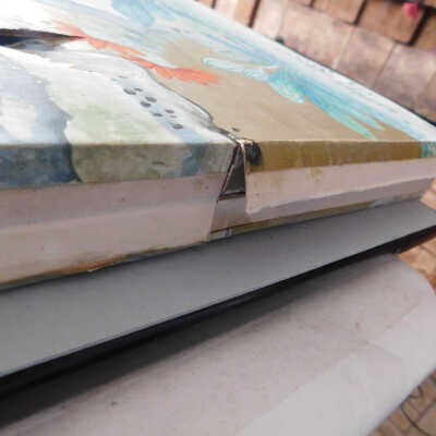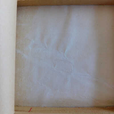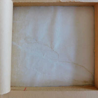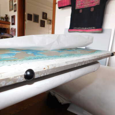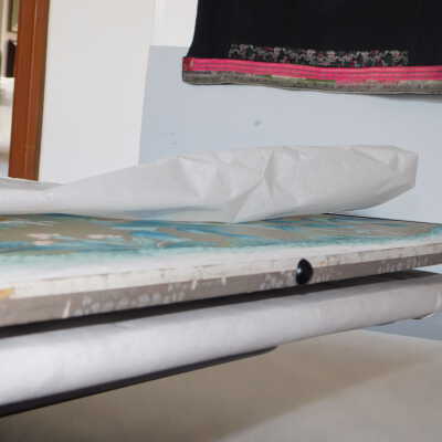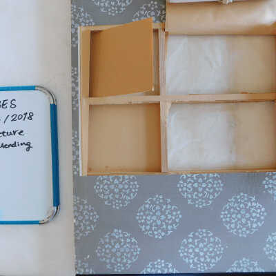Humidified lining again and rubbed from back side due to undulation of the surface. Humidified again and tucked the cardboard from the front side, rubbing and pressing from the back.Acute Treatment