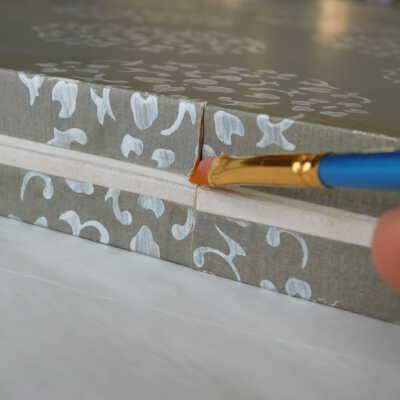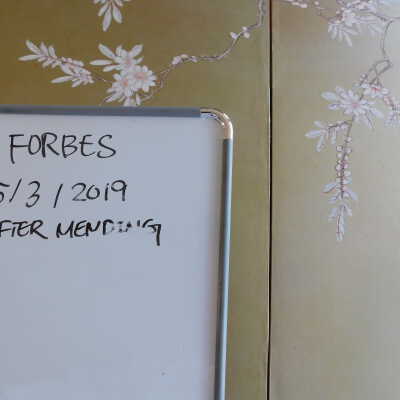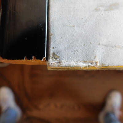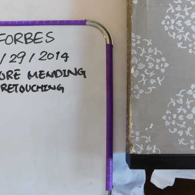 Filled holes on the black frame with modostuc. Took treatment pictures. Attached tears on the hinge from the back side. Filled holes with modostuc to level thesurface by rubbing it slightly. Mended tears on front side hinge.Acute Treatment