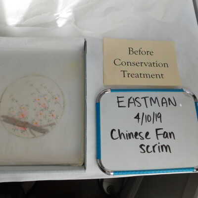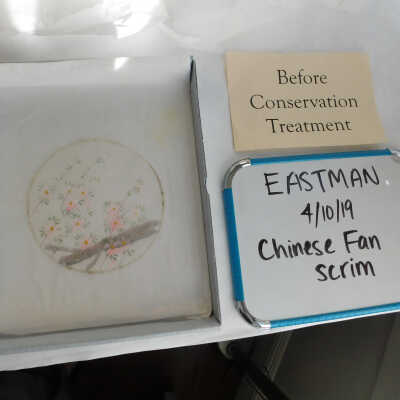 Loss of silk around the edge; varying amount of folding and creasing over surface