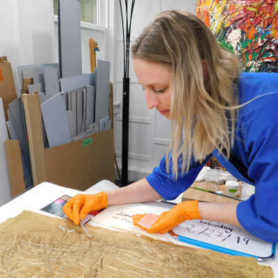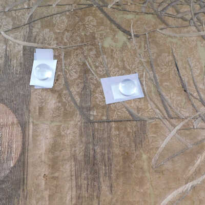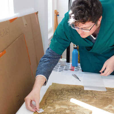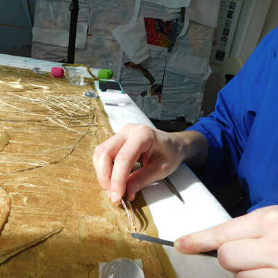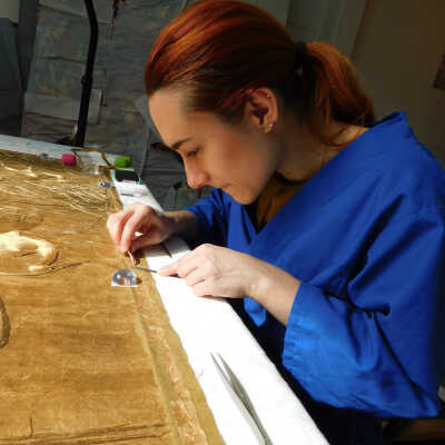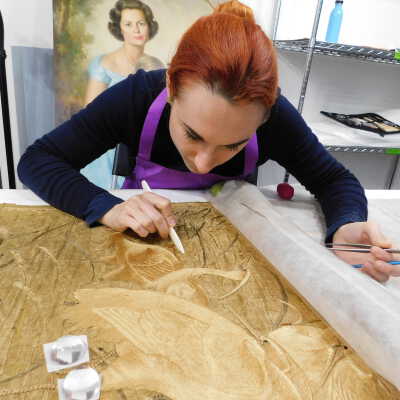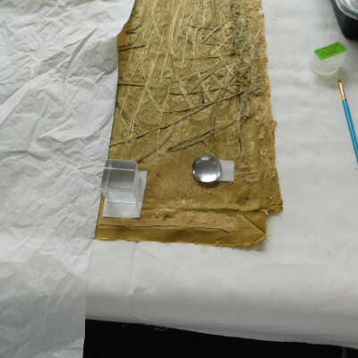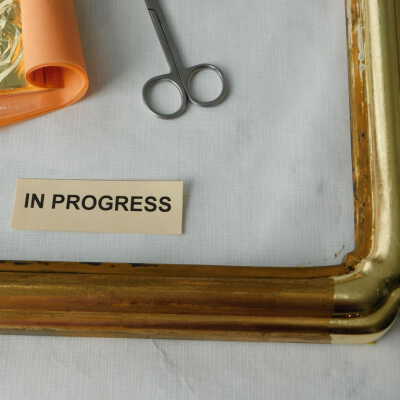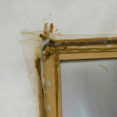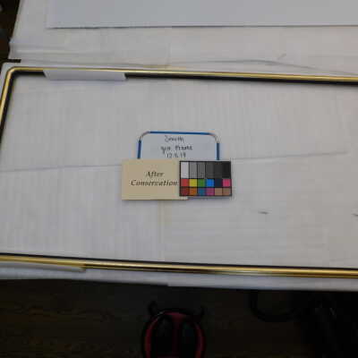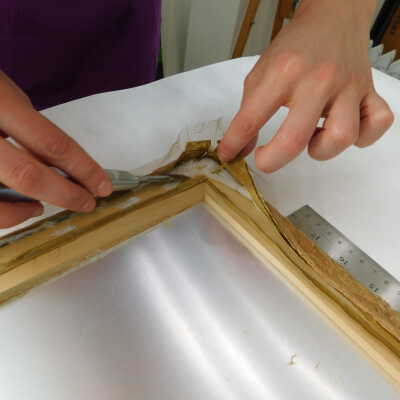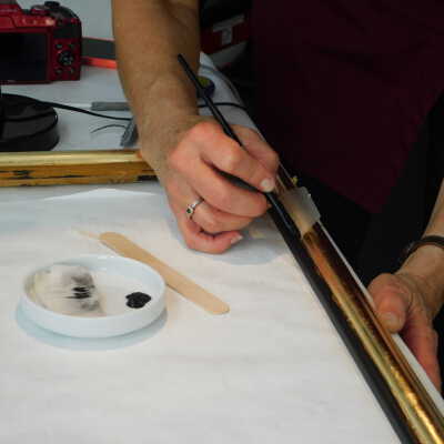 Removing black paint around the interior of the frame using acetone swabs. Dampen cotton with acetone and apply to surface, wrapped in cling film for 30 min to soften the binding agent.Acute Treatment