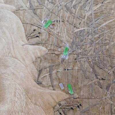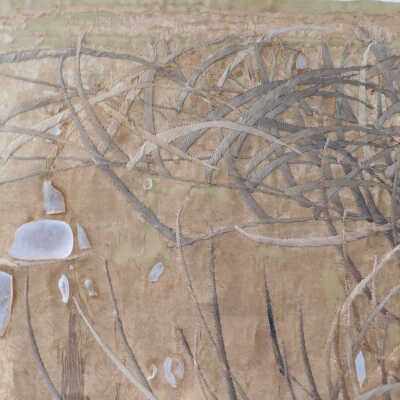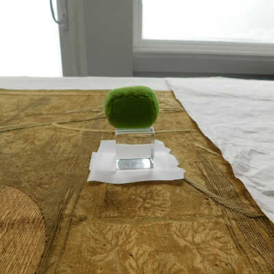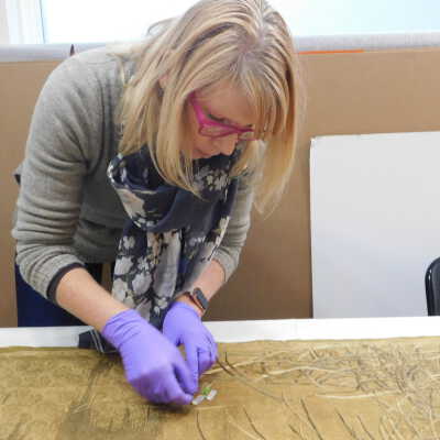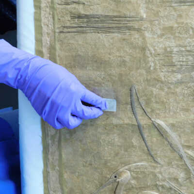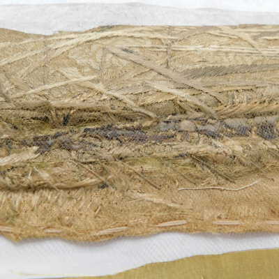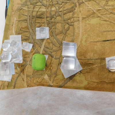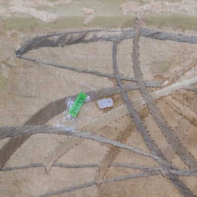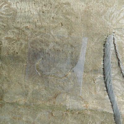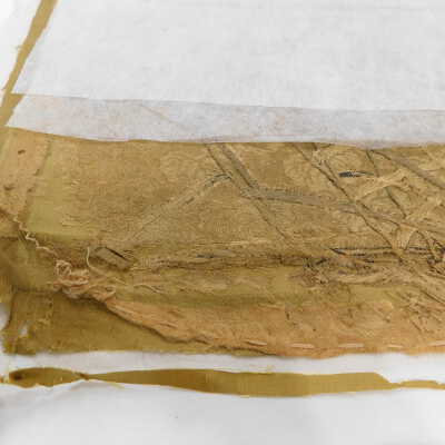 Applied 5.75% agarose gel with 2% triton x-100 and 1% Turgitol on the tidelines. The gels have been in contact with the object for 3 hours and then they were removed. A sandwich of silicone release paper, blotting paper, and another layer silicone release paper was positioned under and on top of embroider with a soft weight.Acute Treatment