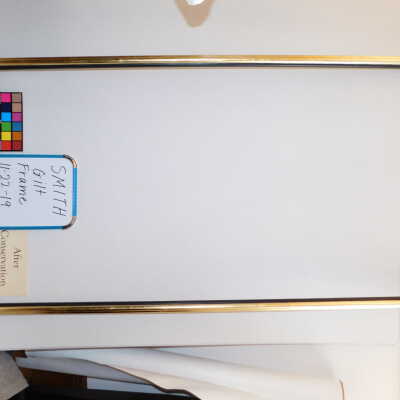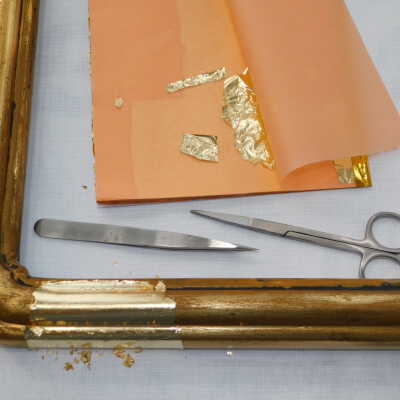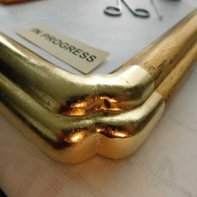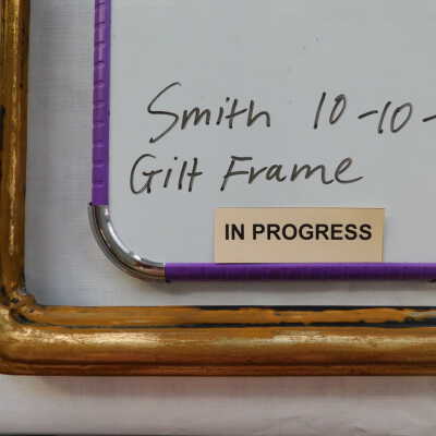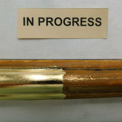 Applied gold leaf to frame, filled voids, and burnished.Acute Treatment