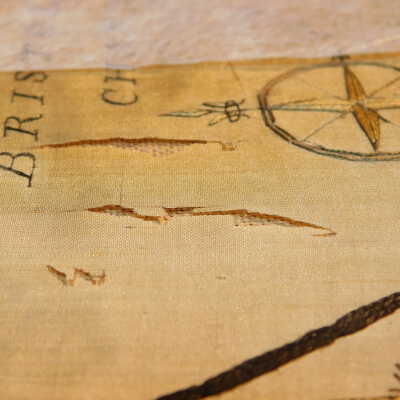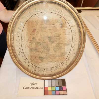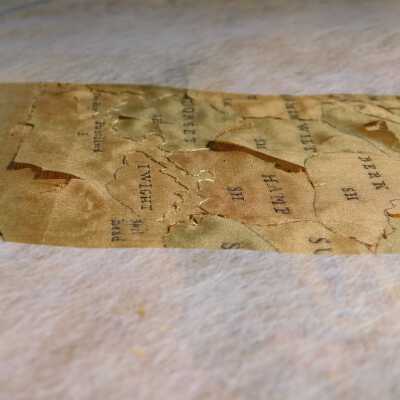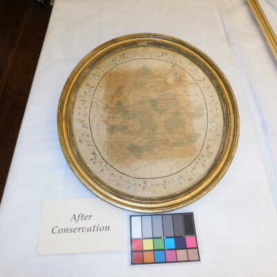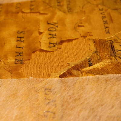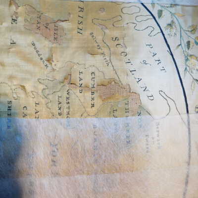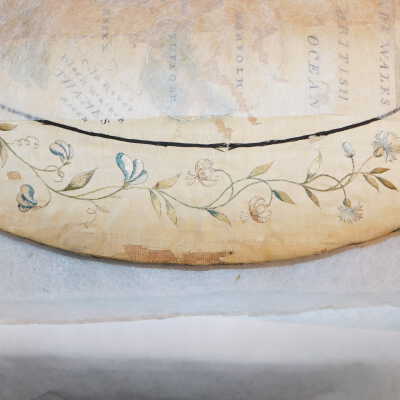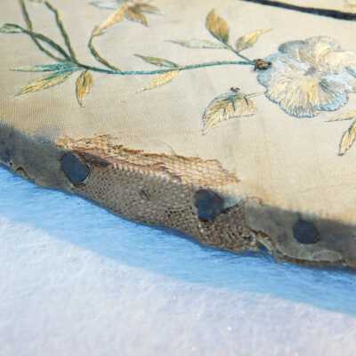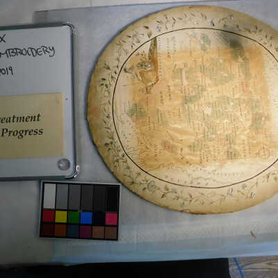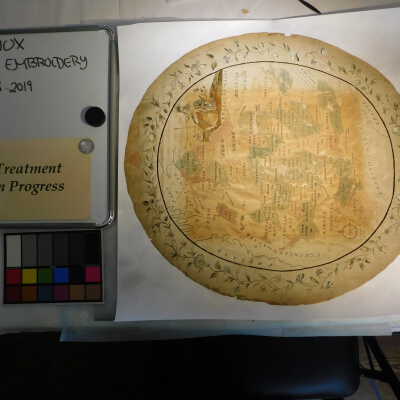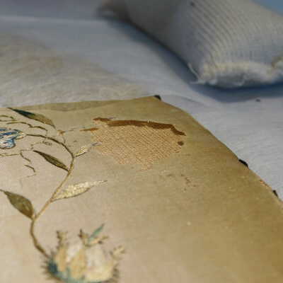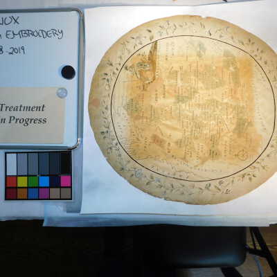 Consolidation of silk using 4:1 methyl cellulose in water. Consolidated edges of silk to linen lining.Acute Treatment