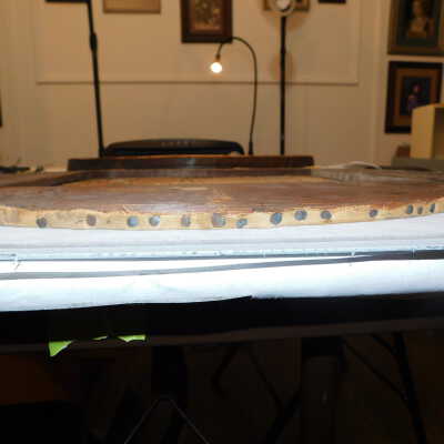 Fills made using modostuc. Fills smoothed using a combination of water, scalpel, and sandpaper. Shaped and carved fills. Began coating fills with bole.Acute Treatment