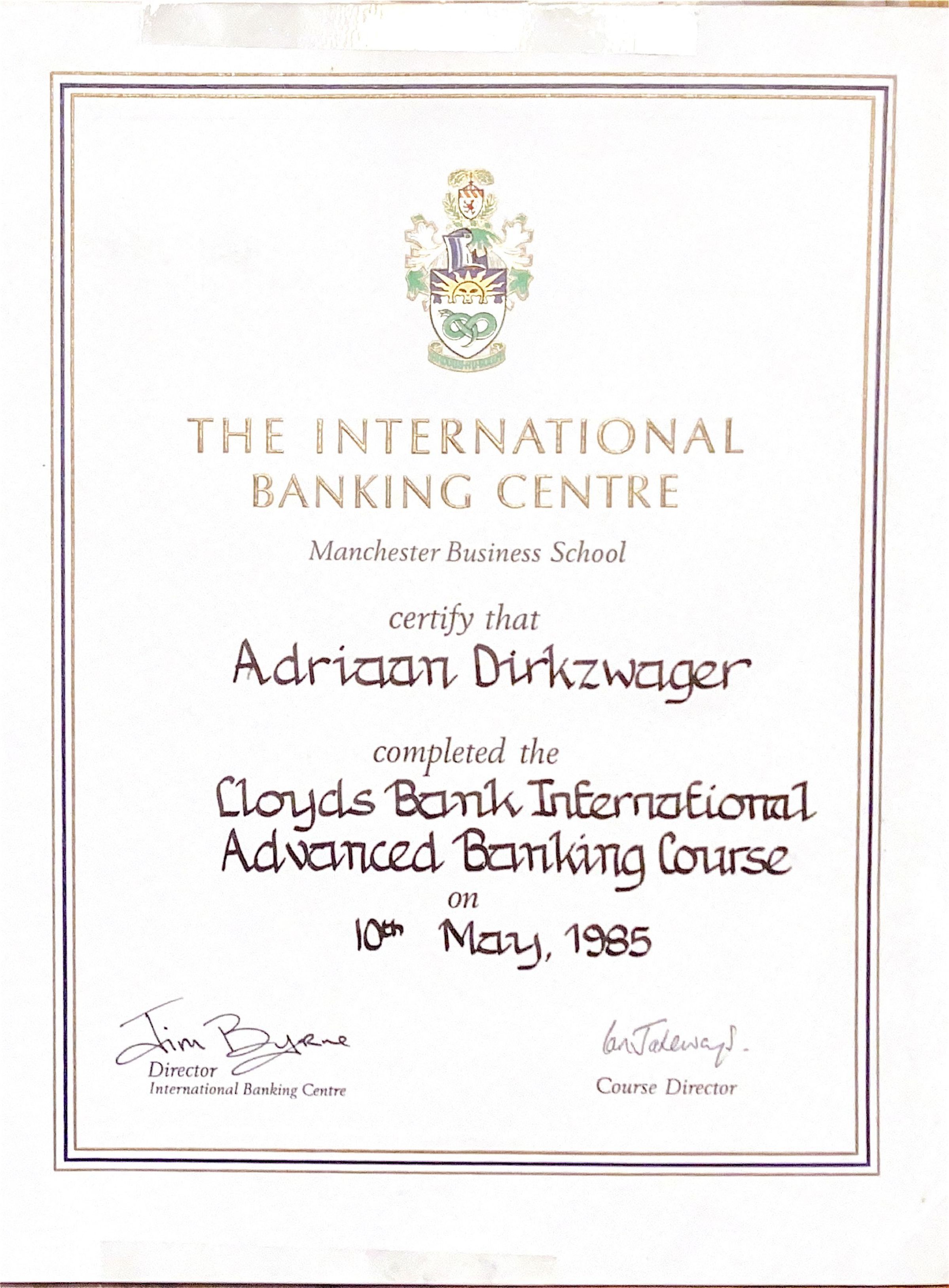 1985-05-10 Certification ADD completed The International Advanced Banking Course..