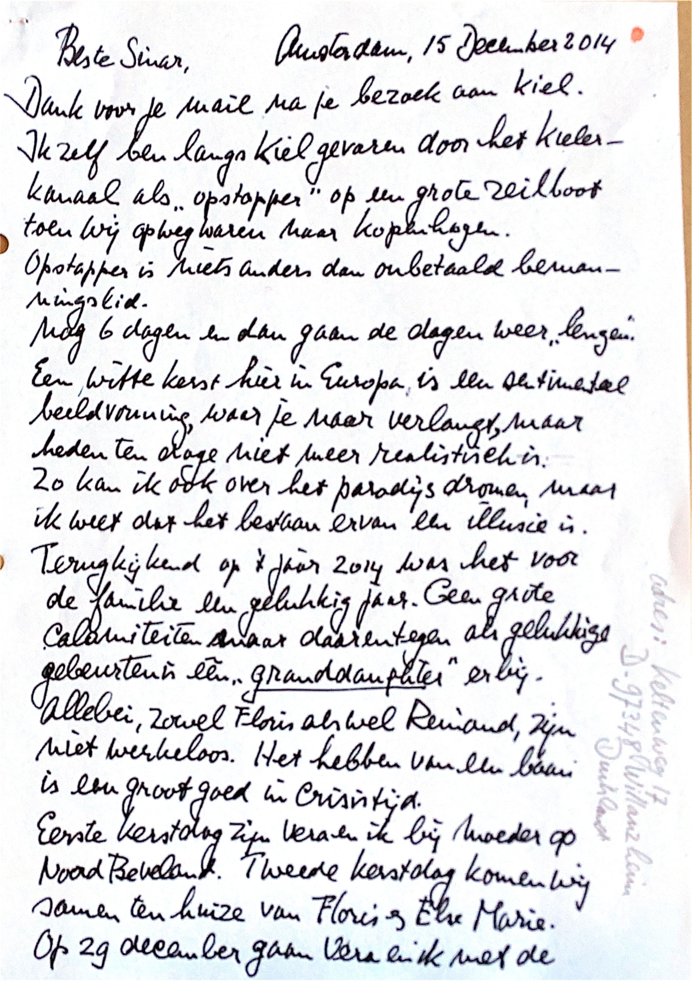 Zo kan ik ook over her paradijs dromen, maar ik weet dat het bestaan ervan een illusie is. Terugkijkend op 't jaar 2014 was het voor de familie een gelukkig jaar. Geen grote calamiteiten maar daarentegen als gelukkige gebeurtenis één. "granddaughter" erbij.