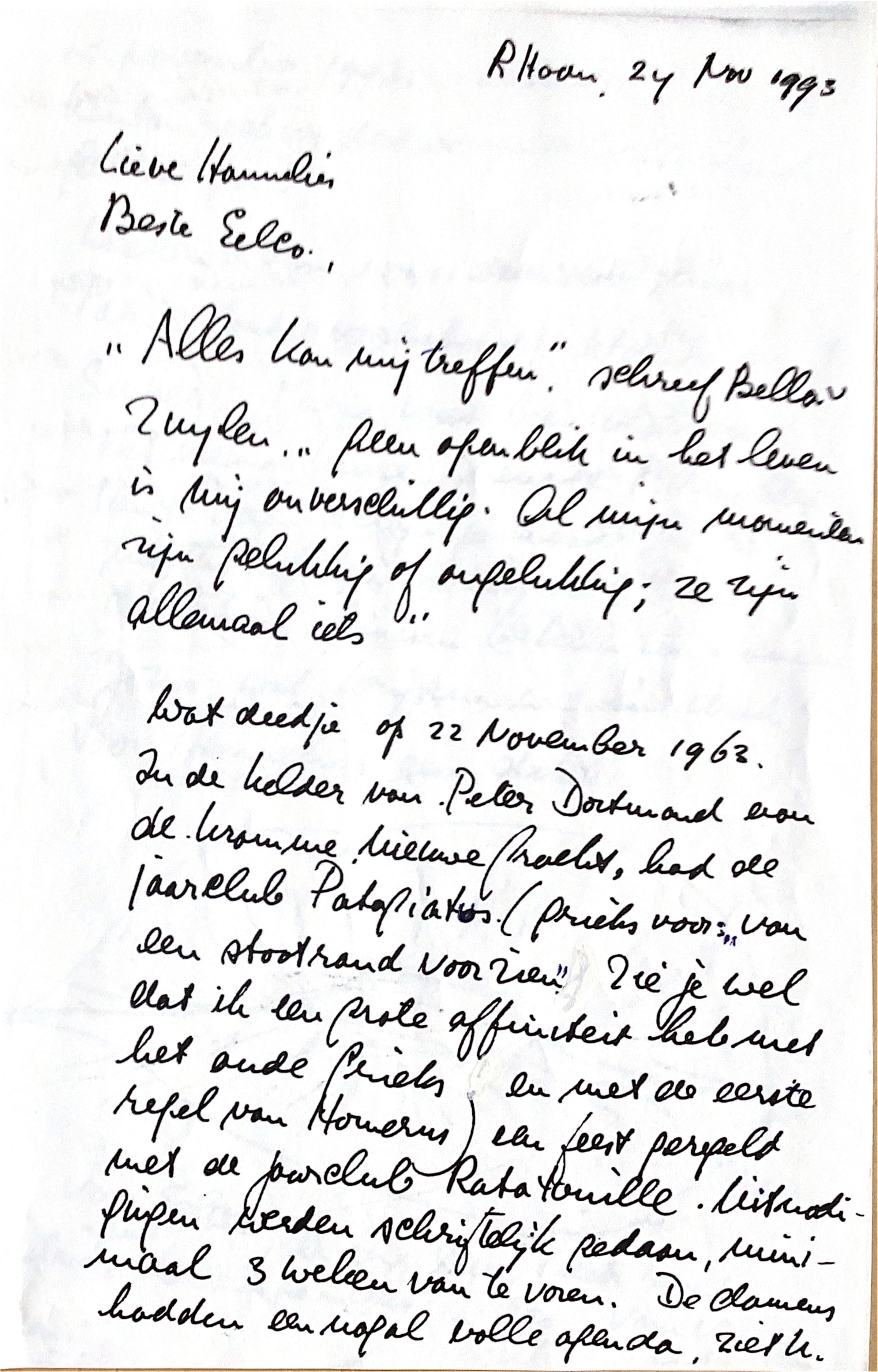 Wat deed je op 22 november 1962? In de kelder van Peter Dortmond op de Kromme Nieuwe Gracht in Utrecht? Had de jaarclub Patagiatus (Grieks voor: "Van een stootrand voorzien.") een 'get together' geregeld met de UVSV jaarclub "Ratatouille. De uitnodiging was drie weken van. te voren schriftelijk verstuurd. De dames hadden een nogal volle agenda, ziet U.
