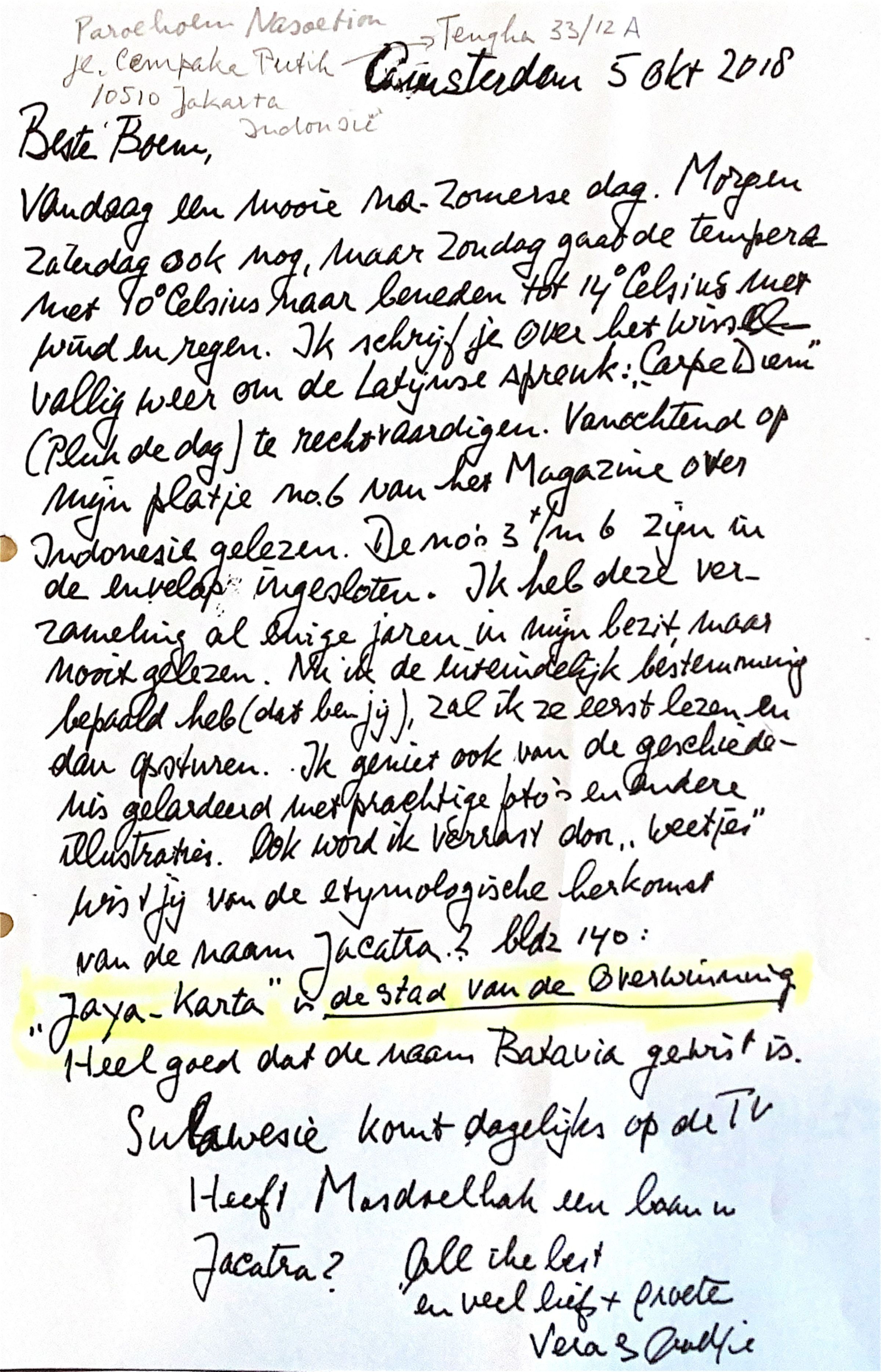 2018-10-05 Mail naar Paroehoem, ook wel Boem) Nasoetion in Jakarta.