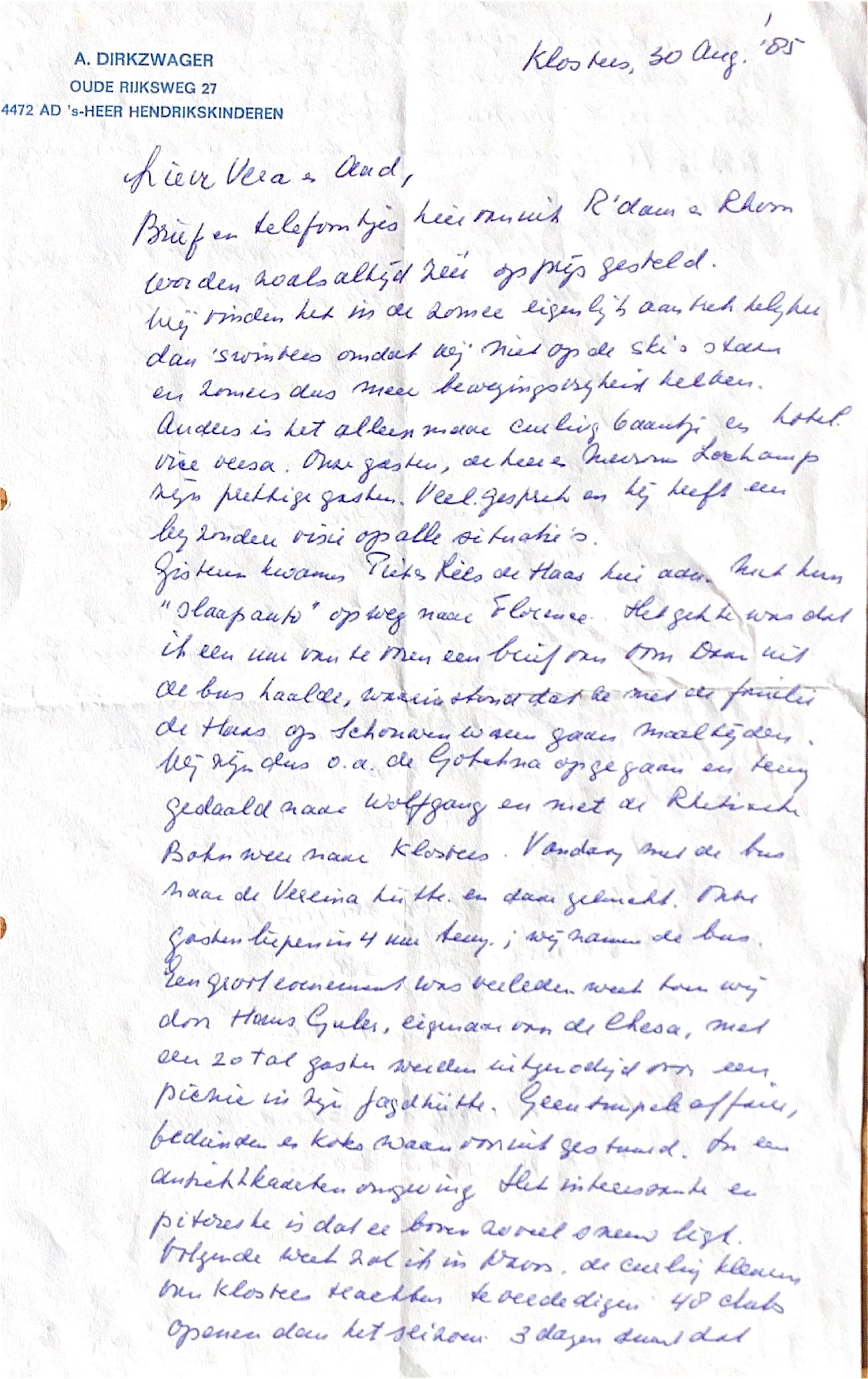 Wij vinden het hier in de zomer eigenlijk aantrekkelijker, dan 's winters, omdat wij niet op de ski's staan en zomers dus meer bewegingsvrijheid hebben. Anders is het alleen maar naar het curling-baantje en naar Marktplatz vice versa. Onze gasten de heer en mevrouw Lackamp zijn prettige gasten. Veel gesprek en hij heeft een bijzondere visie op alle situatie's.