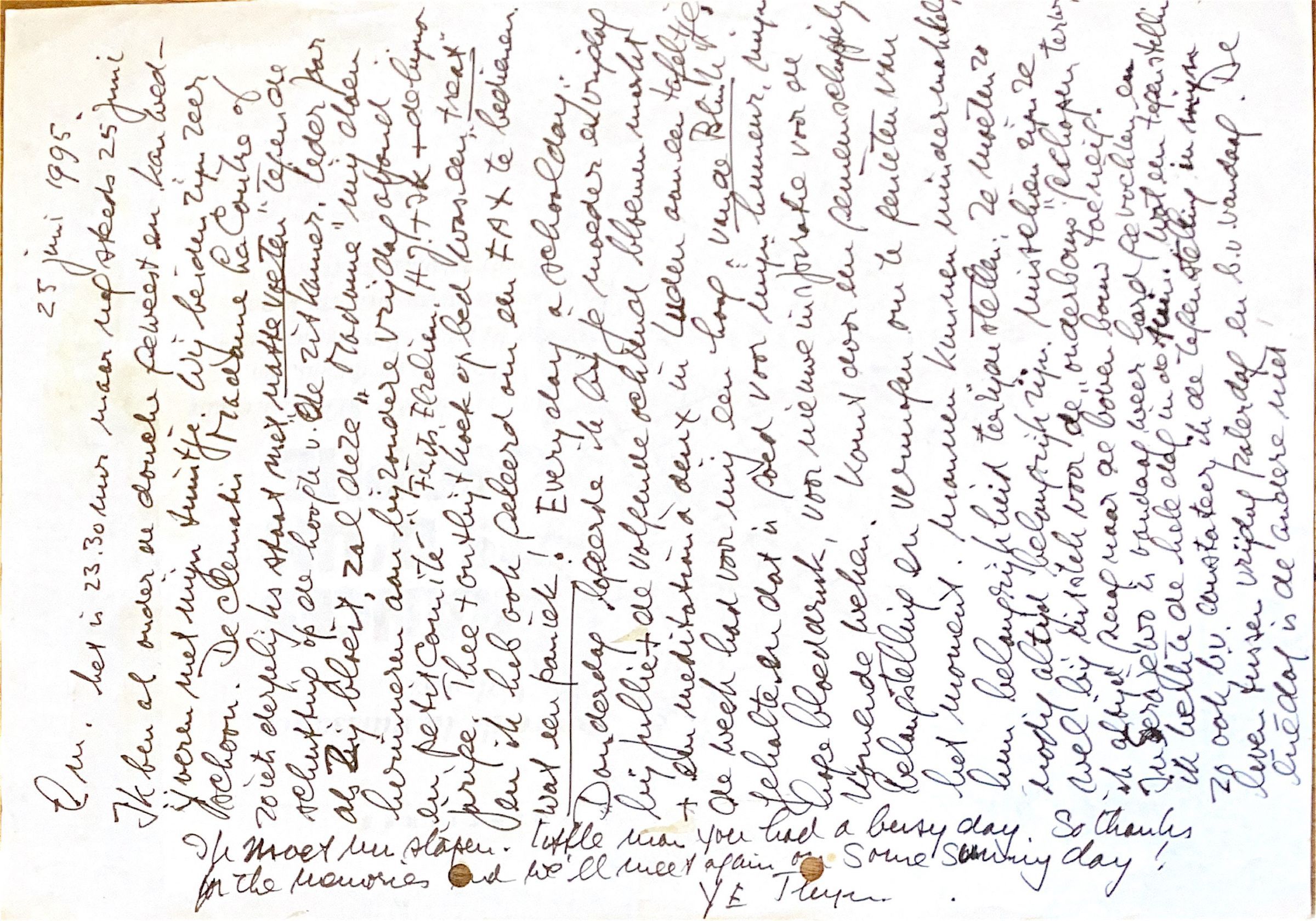 In Serajewo is vandaag weer hard gevochten en ik werkte de hele dag in de tuin. Wat een tegenstelling. Zo ook, bij voorbeeld constateer ik de tegenstelling in mijn leven tussen j.l. vrijdag/zaterdag en vandaag. De ene dag is de andere niet. Ik moet nu slapen. Little man, you had a busy day. Thanks for the memories and we'll meet again on some sunny day." Yfe Thym.