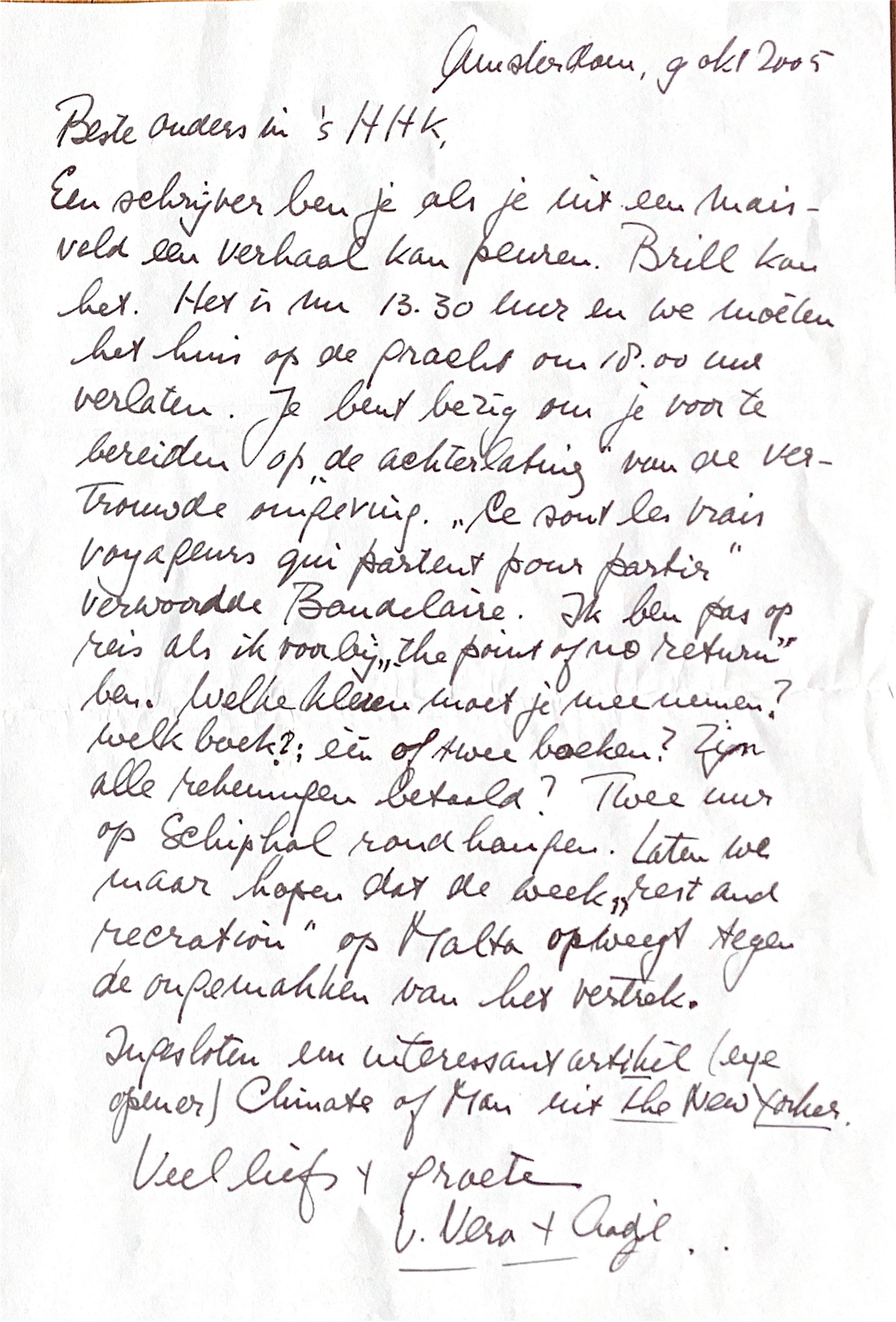 Ingesloten in de enveloppe een interessant artikel: "Climate of Man" uit the New Yorker (an eye opener).