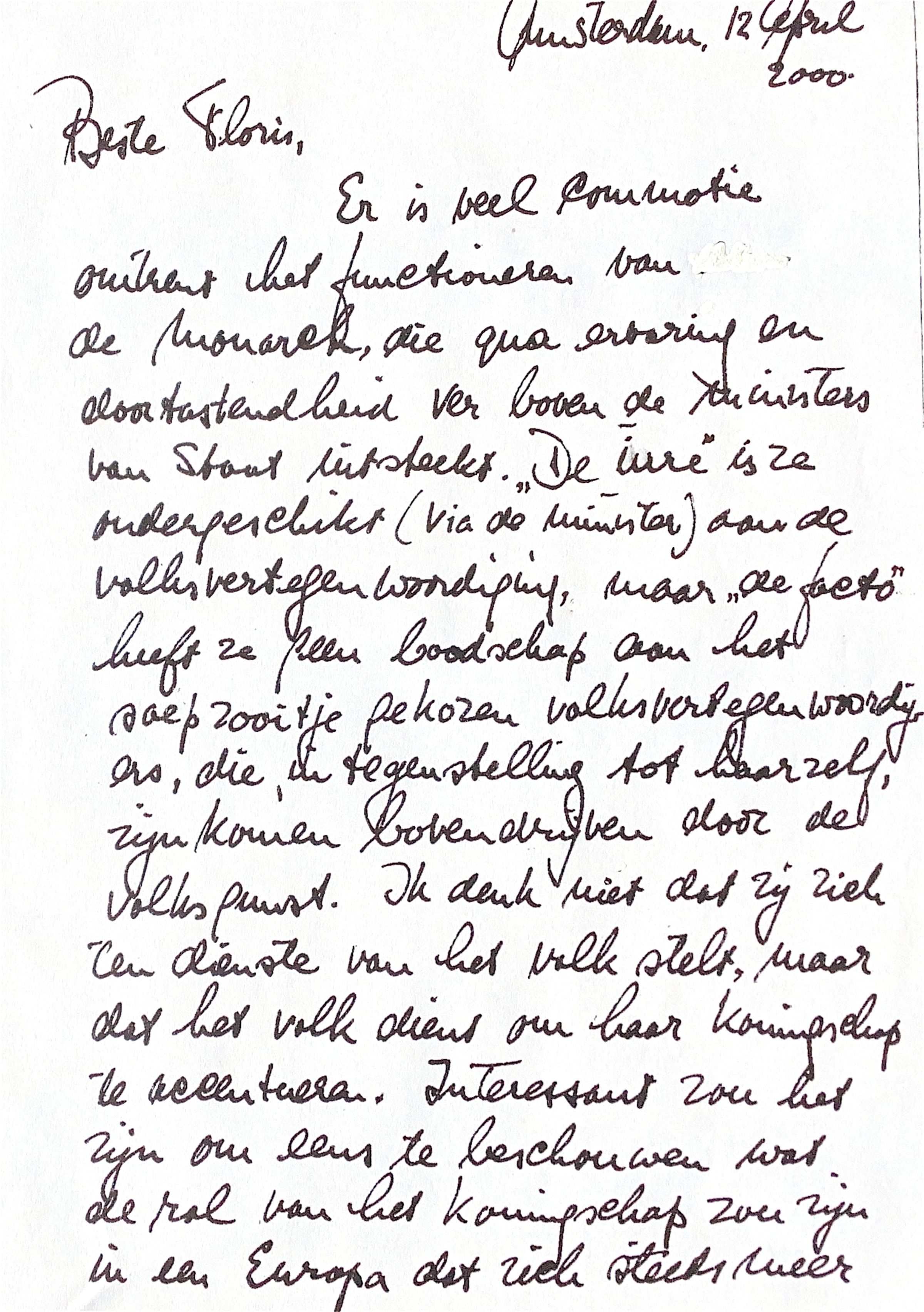 Interessant zou het zijn om eens te beschouwen wat de rol van het Koningsschap zou zijn in een Europa dat zich steeds meer vereend. De Graven van Holland als wel de Hertogen van Gelre bestaan ook niet meer. Enfin, dit ter zijde.