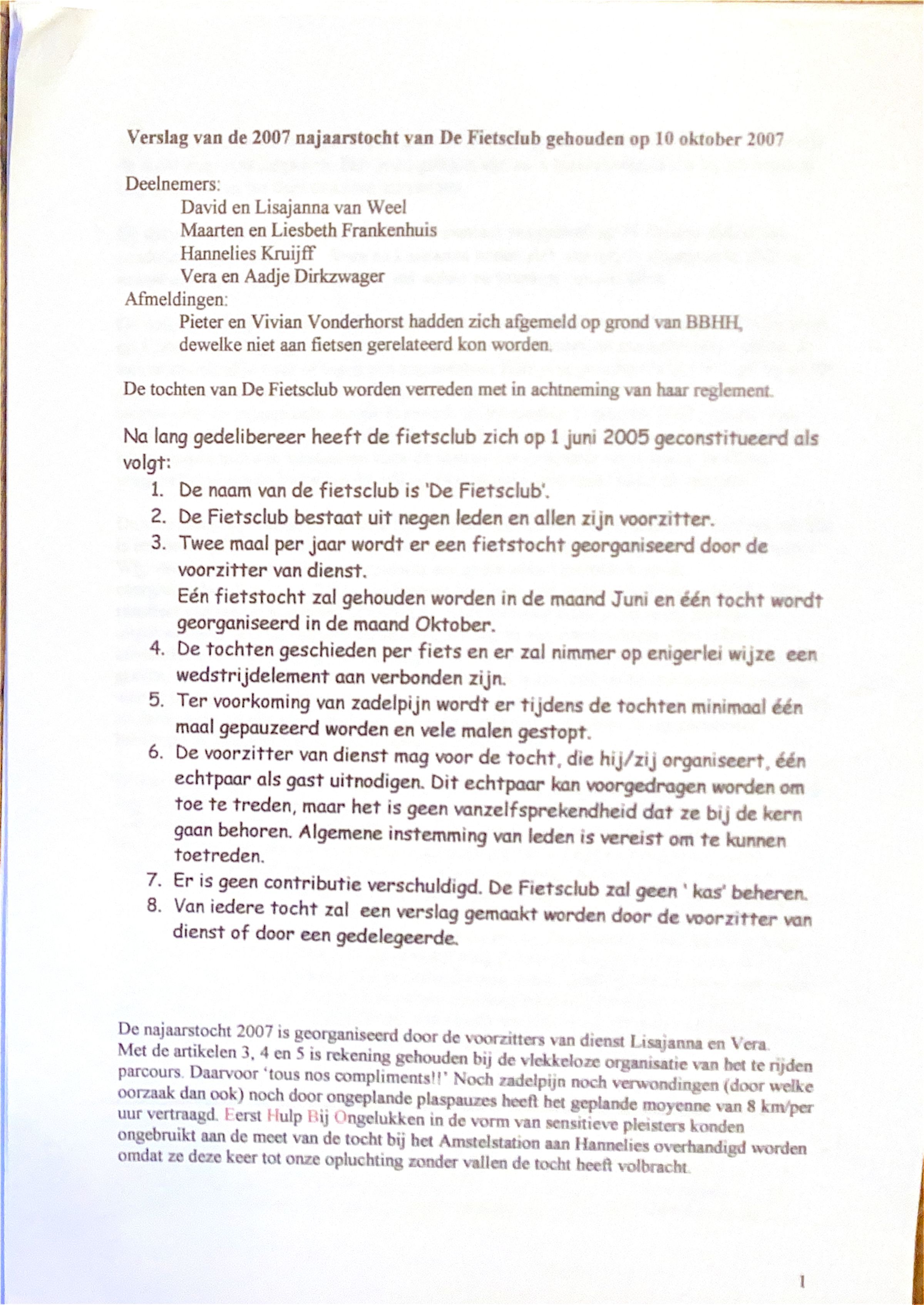 7. Er is geen contributie verschuldigd. De Fietsclub zal geen kas-beheren.