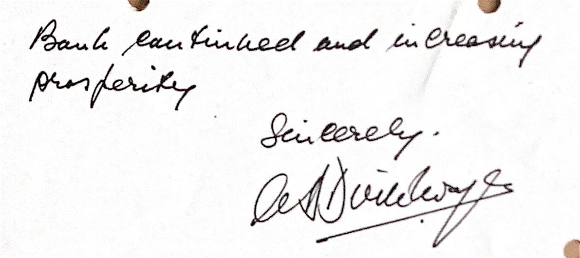With feelings of pleasure and gratitude shall I always remember, when I think back of my employment with Bank of America, and I wish the Bank continued-and increasing prosperity