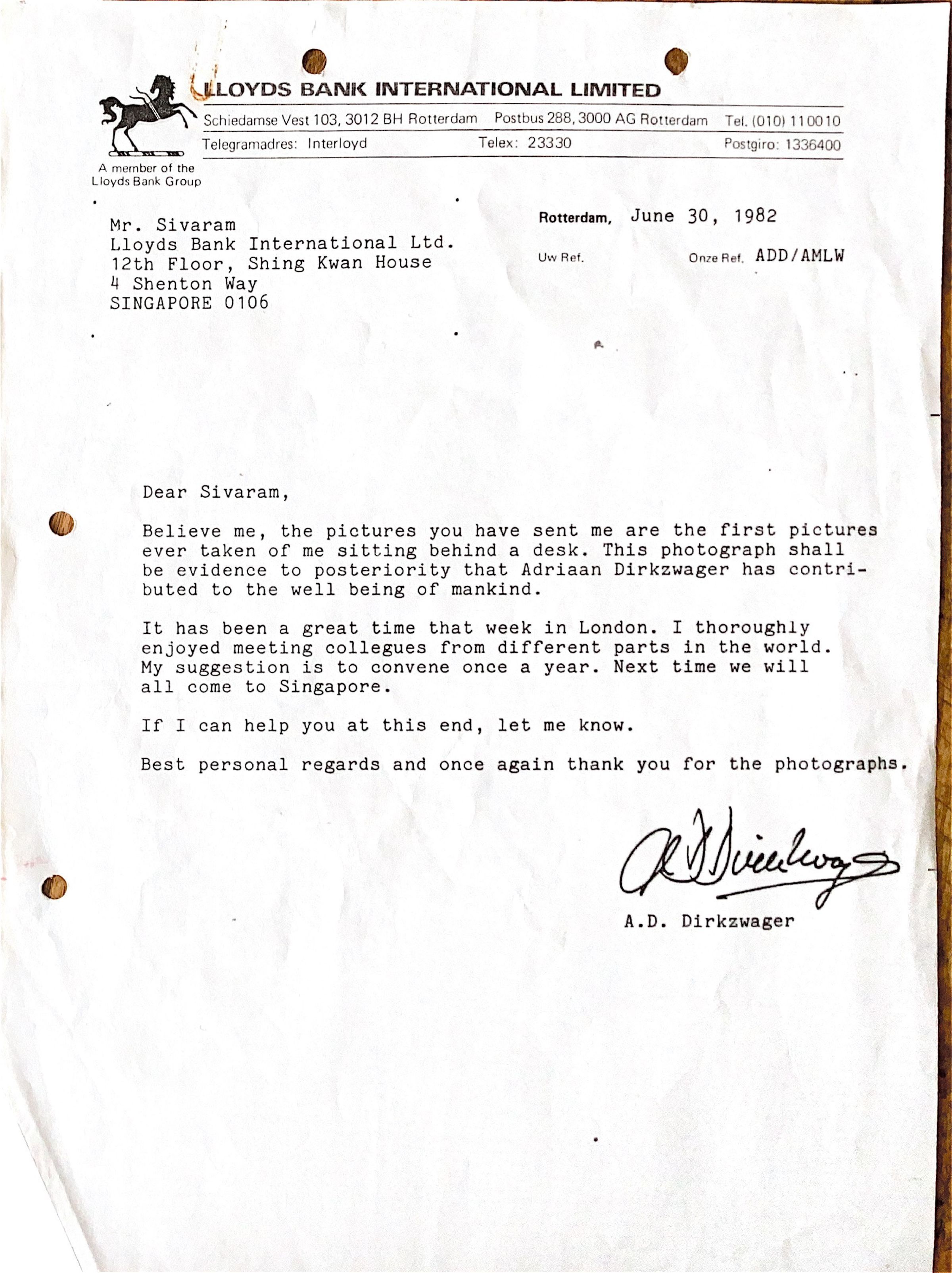 1982-06-30 Brief aann Mr Sivaram, Singapore.