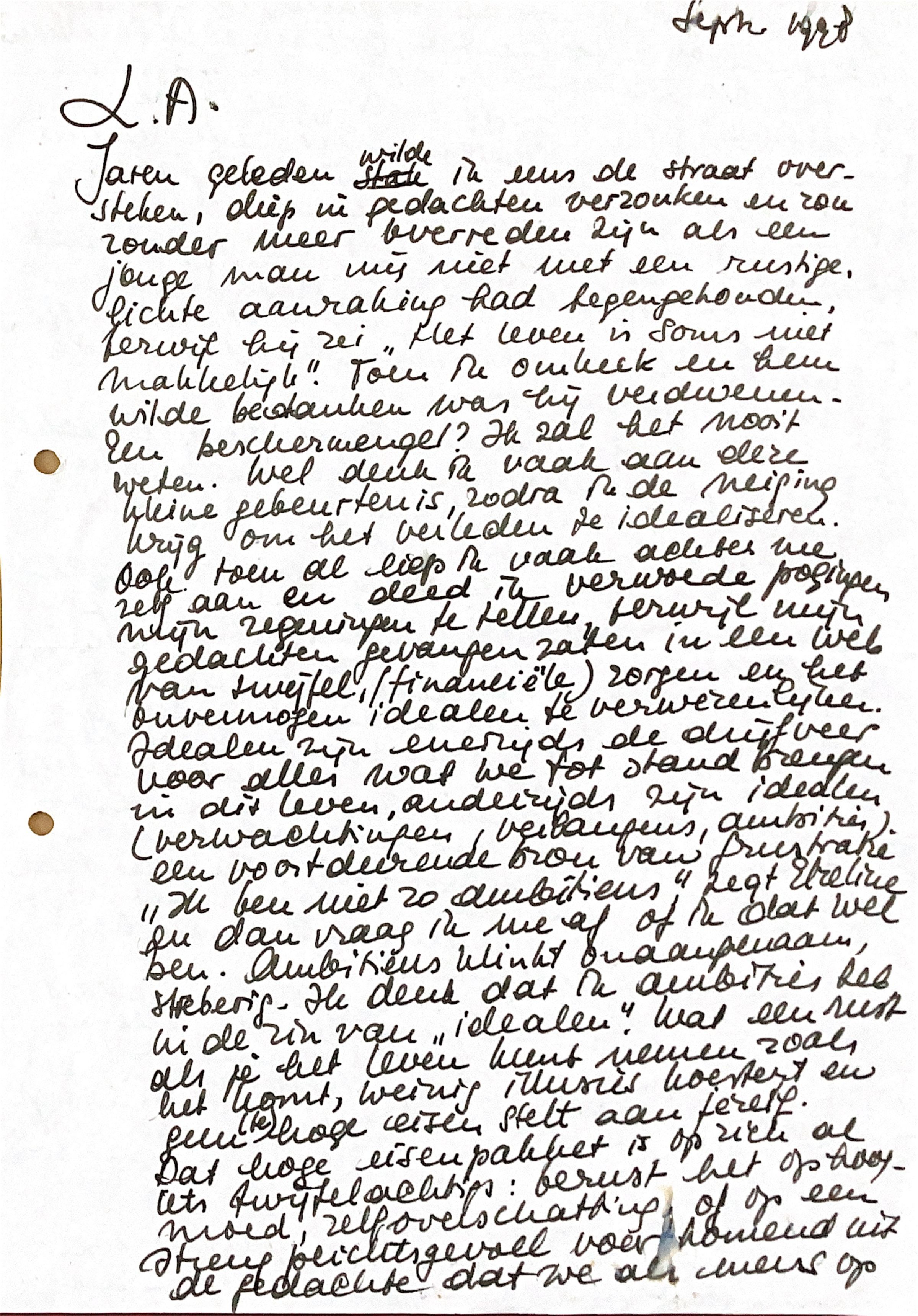Idealen zijn enerzijds de drijfveer voor alles wat we tot stand brengen in dit leven, anderzijds zijn idealen (verwachtingen, verlangens, ambities) een voortdurende bron van frustraties. "Ik ben niet zo ambitieus", zegt Elzelien Hes en dan vraag ik mij af of ik dat wel ben. Ambitieus klinkt onaangenaam, streberig. Ik denk dat ik ambities heb in de zin van "idealen". Wat een rust als je het leven kunt nemen, zoals het komt, weinig illusies koestert en geen te hoge eisen stelt aan je zelf.