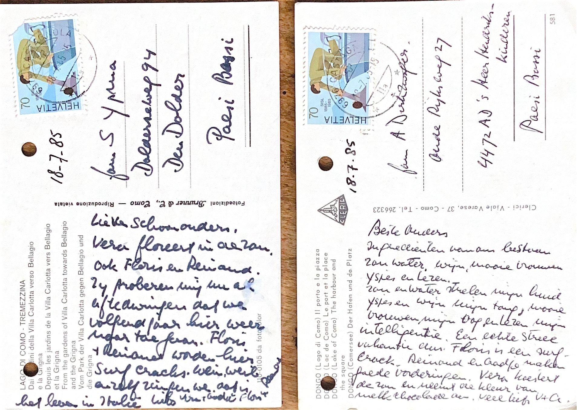 Zon en water strelen mijn huid en ijsjes en wijn mijn tong en mooi vrouwen strelen mijn ogen en lezen mijn intelligentie. Een echte "streel'-vakantie, dus Floris is een surf-crack. Reinoud en Aadje maken goede vorderingen. Vera koesrtert de zon en nemmt de kleur van melkchocola aan. Veel liefs van V & A