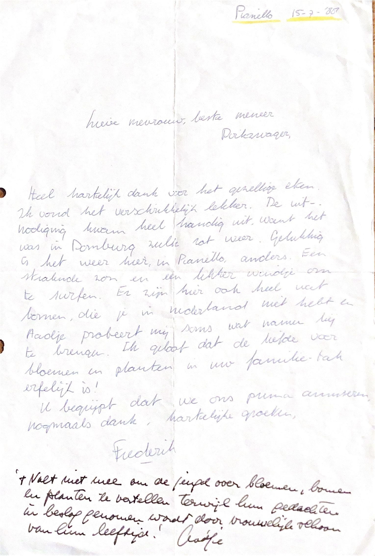 Geschreven brief door Floris vanuit PIanello naar zijn grootouders in 'sHHK
