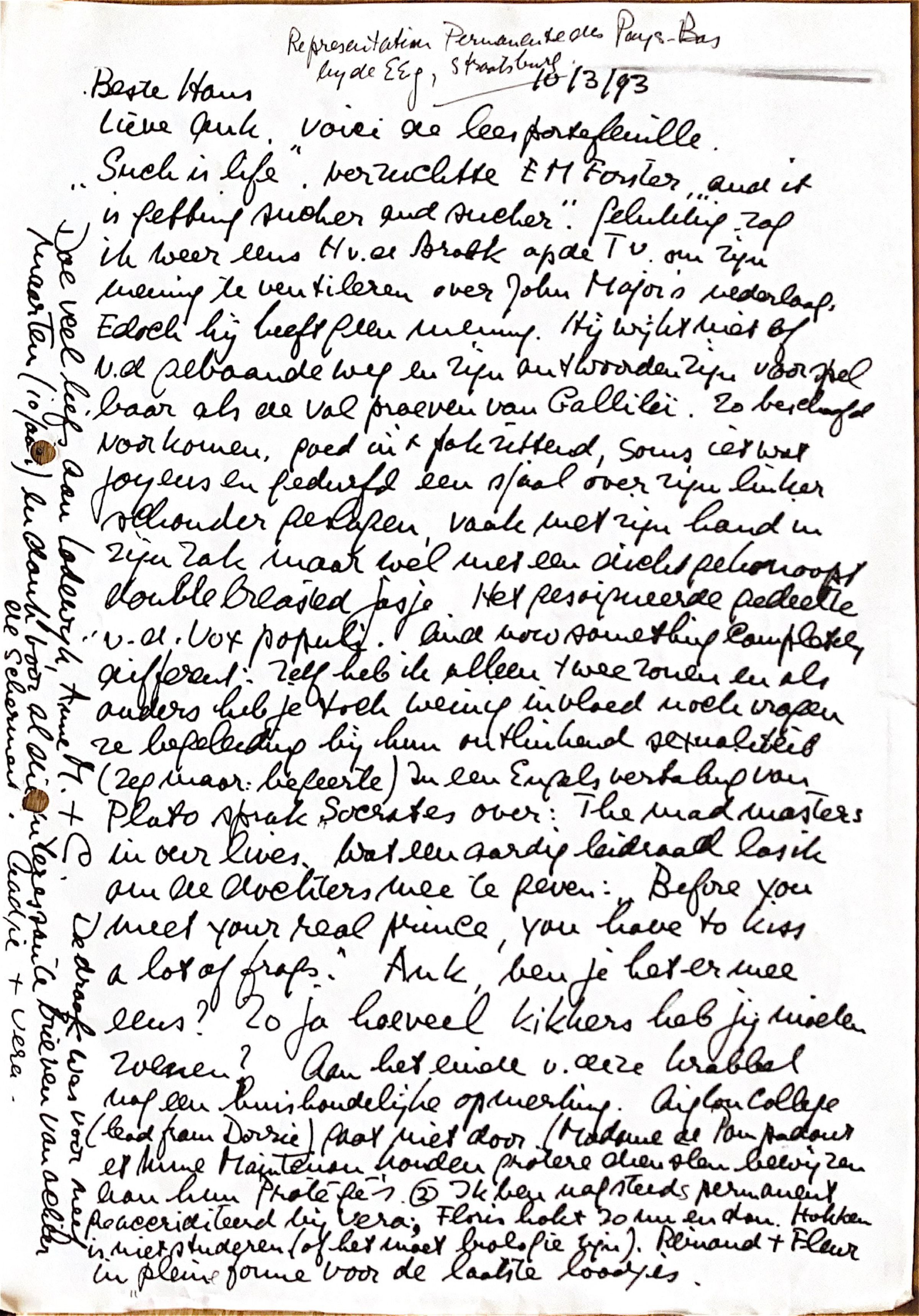 Beste Hans, Representant Permanent des Pays Bas bij de EEG in Straatsburg.