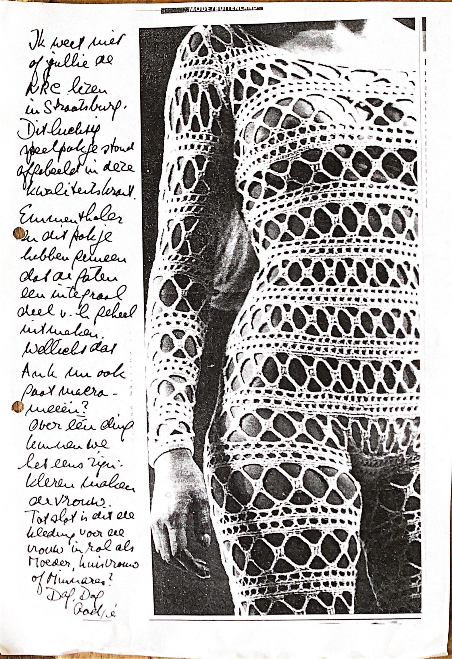 De vraag tot slot is: " Is dit kledingstuk voor de vrouw in de rol als moeder, huisvrouw, of minnares? Dag, dag Aadje